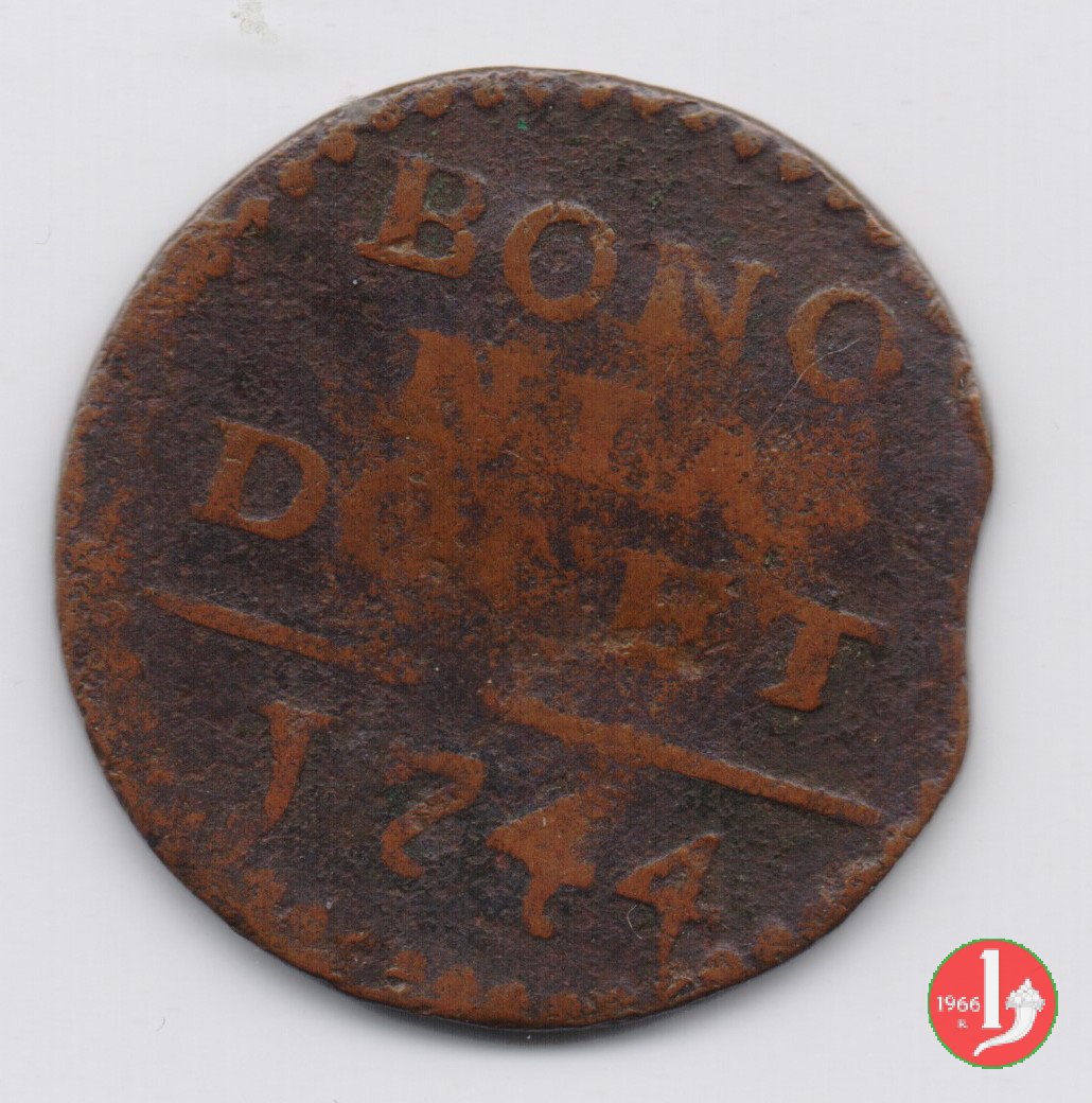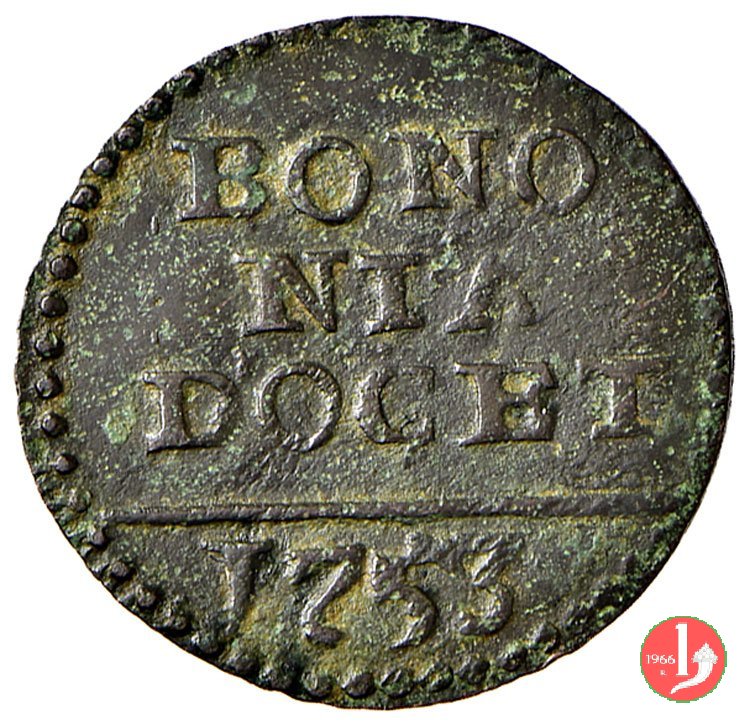 Quelli di Benedetto XIV sono gli ultimi quattrini con il leone coniati a Bologna, coniazioni durate ininterrottamente dal 1604 (regnante papa Paolo V). L'ordine di sospendere le coniazioni arrivò da Roma nel 1757, pertanto non esistono quattrini con questo millesimo e con data 1758, nonostante siano presenti in pubblicazioni del passato quali Muntoni (237r-237s) e CNI. Il millesimo riportato al rovescio di queste emissioni, è scritto con la lettera "J" al posto della cifra "1". Per alcuni millesimi, sono presenti al rovescio stellette il cui numero può essere variabile. | |||||||||||||