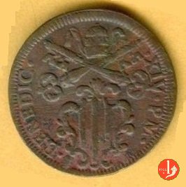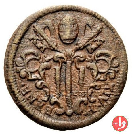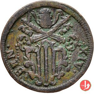 27 D/: Stemma sagomato con punta a destra, chiavi con impugnatura ovale fogliata con cordoni e fiocchi. Legenda da SX: BENEDIC (N rovesciata) • - • XIV • P • • M • A •