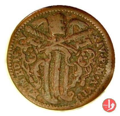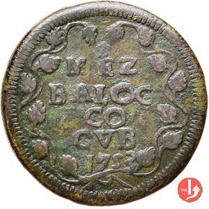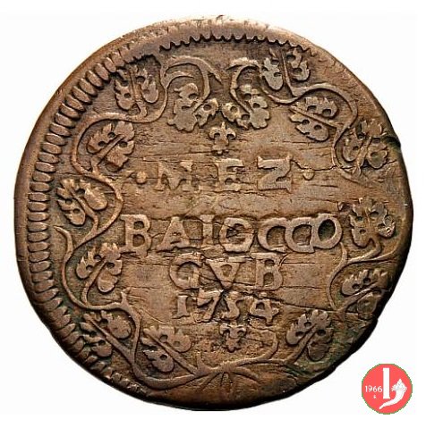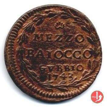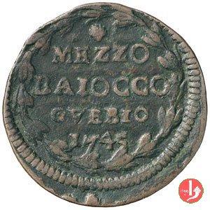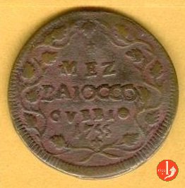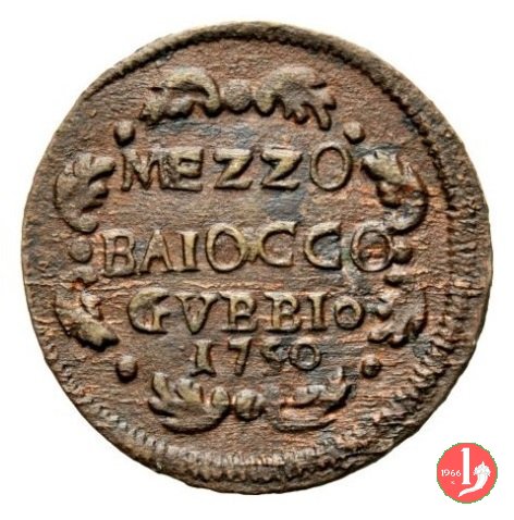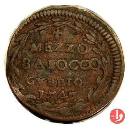 14 R/: stella a 8 raggi // MEZZO // BAIOCCO // GVBBIO // 1748 (la cifra 4 è invertita), in corona di olivo.
