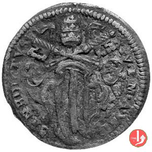 20 D/: Stemma a targa sagomata con fogliami, chiavi con impugnatura ovale fogliata, con fiocchi. Legenda da SX: BENED • - XIV • PM •