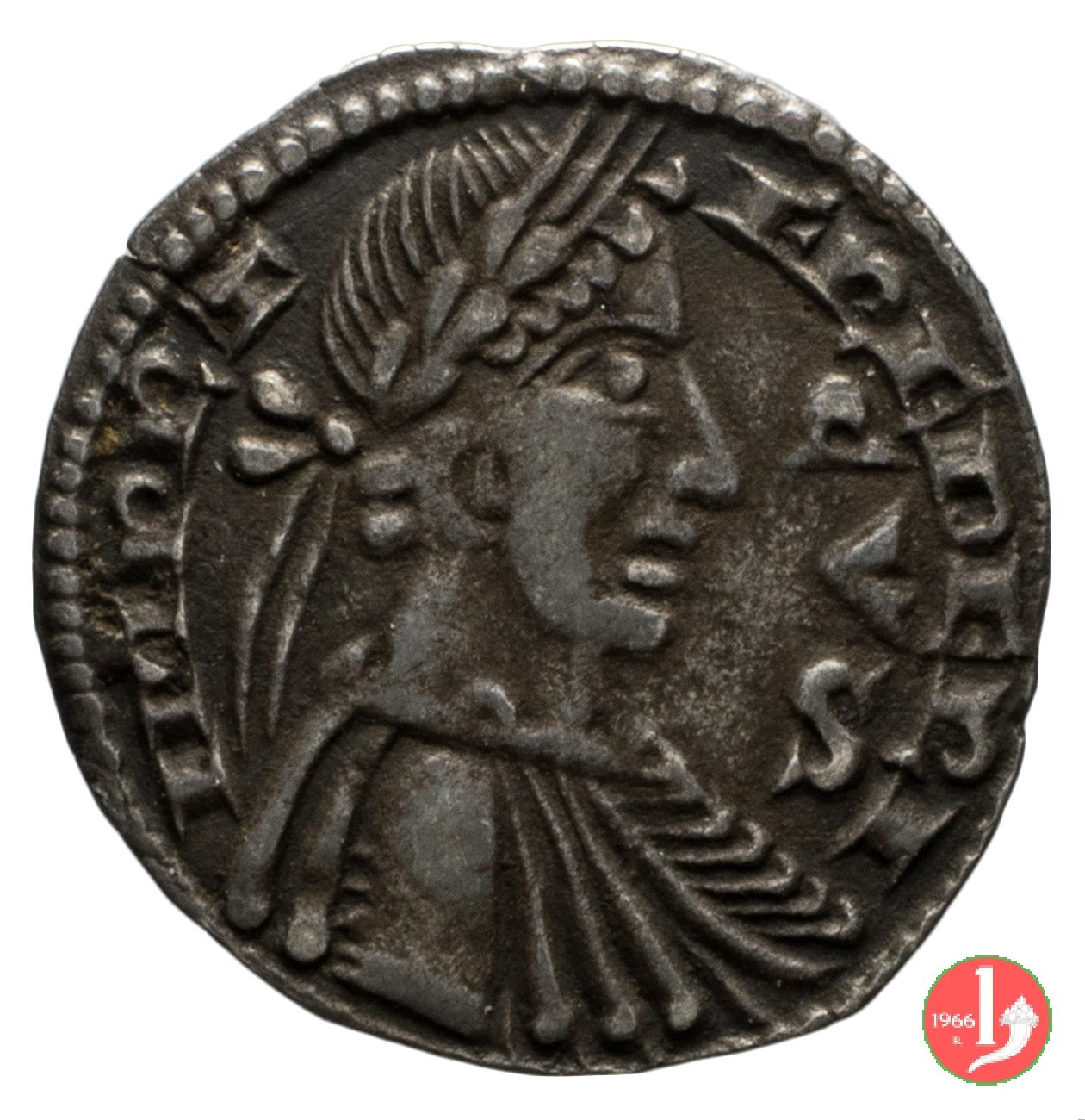 Busto laureato a destra e scritta IMPRT FREDERI CVS a caratteri romanici in contorno perlinato Edificio con tetto cuspidale e tre archi tra quattro torri, e scritta PGA MVM a caratteri romanici in contorno perlinato
