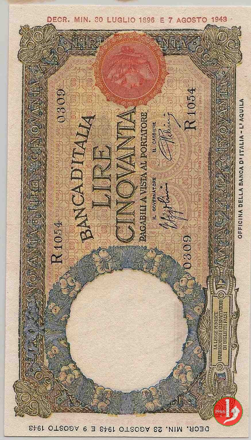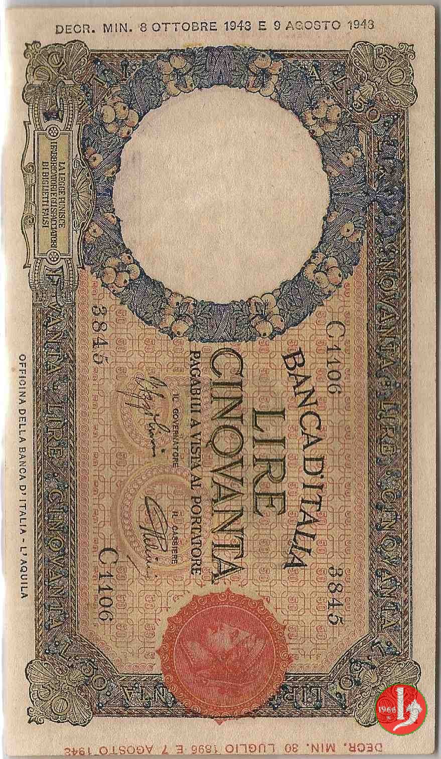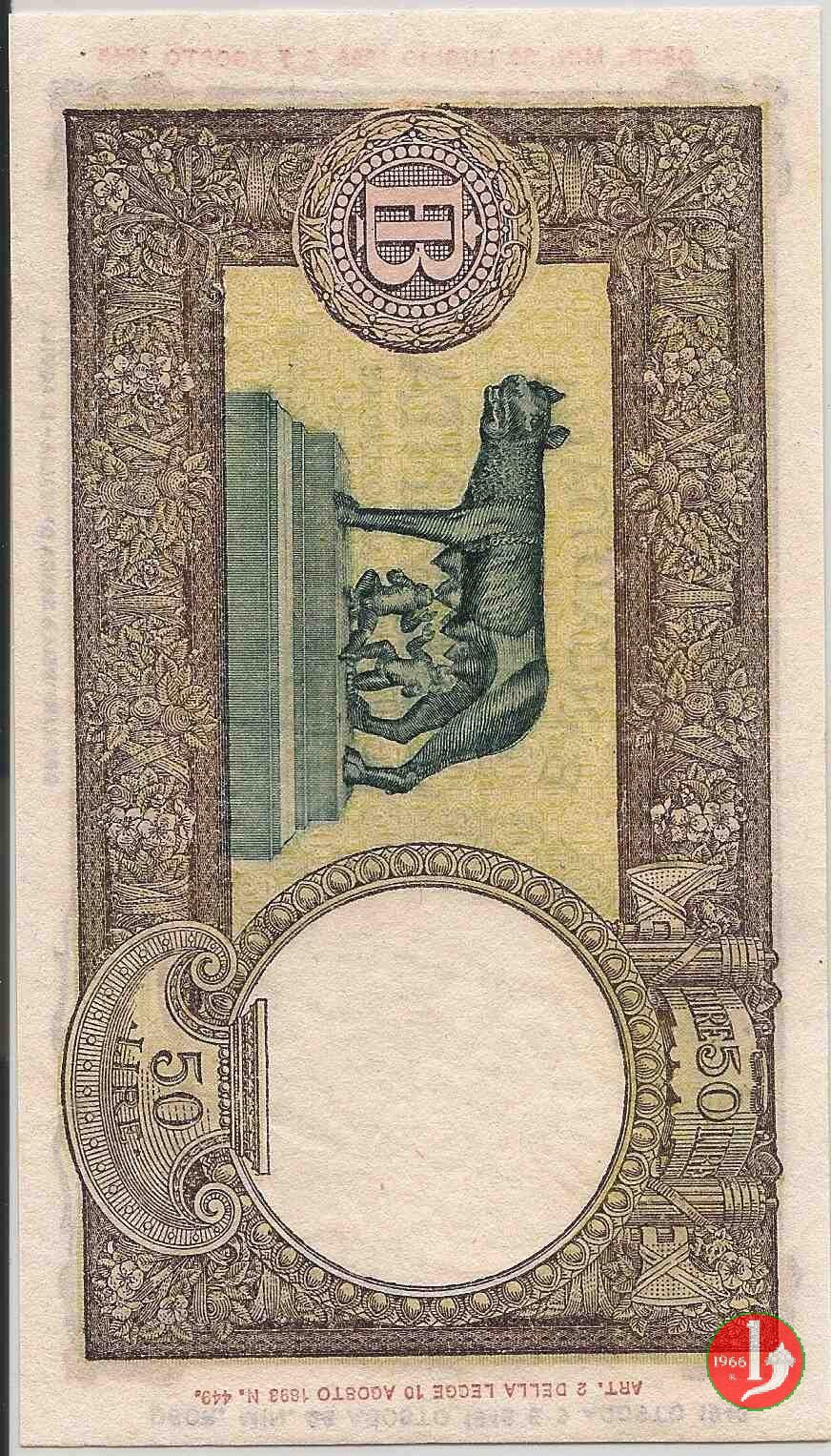 Contorno: Nel Medaglione testa di Giulio Cesare, sui bordi verticali "LIRE 50".