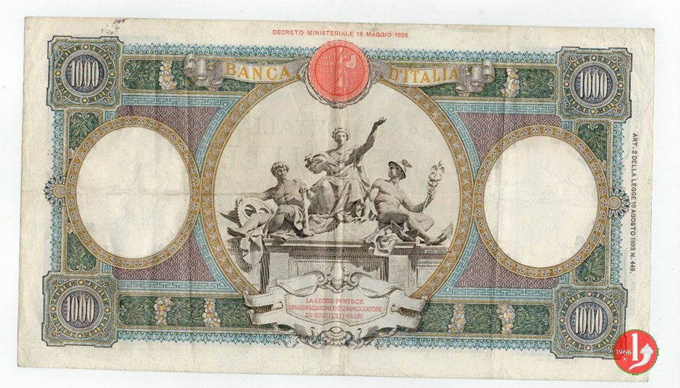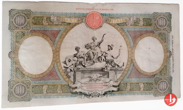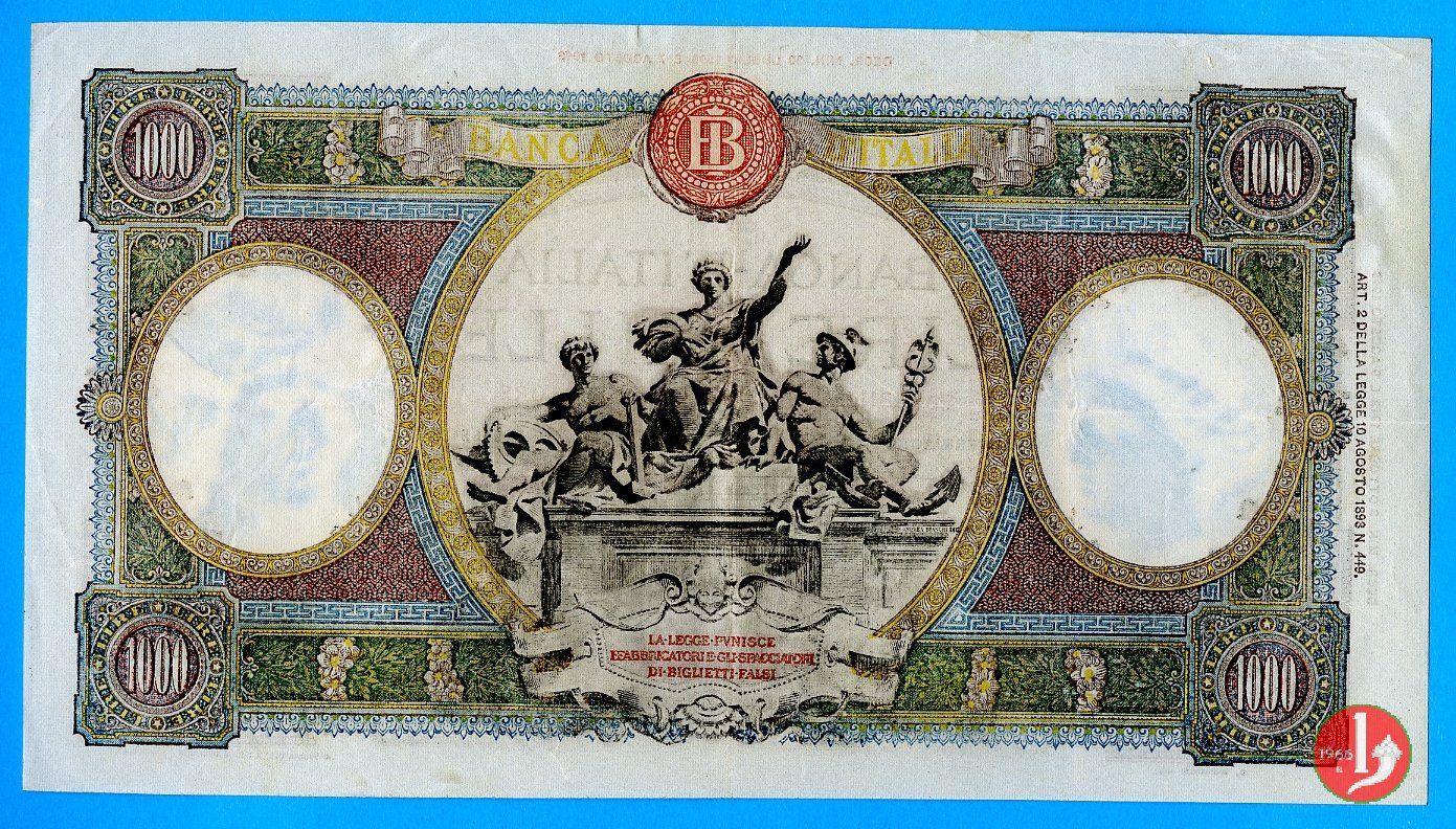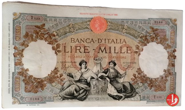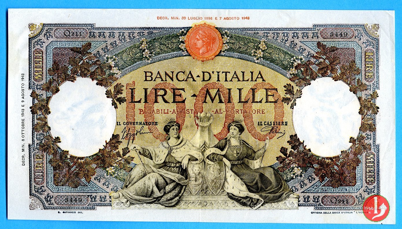 Il D.M. del 09-06-1943, che compare sulle banconote, indica l'introduzione del monogramma "B.I." presente nel retro.
