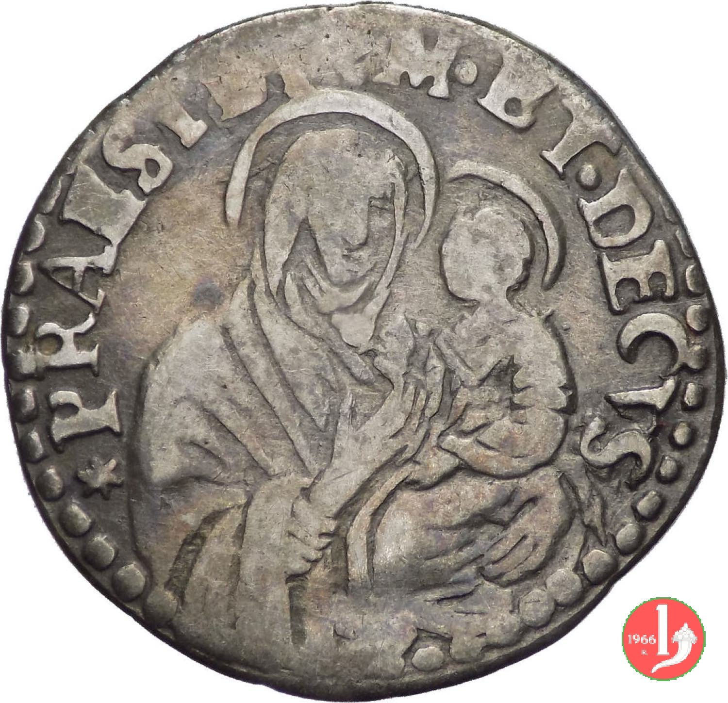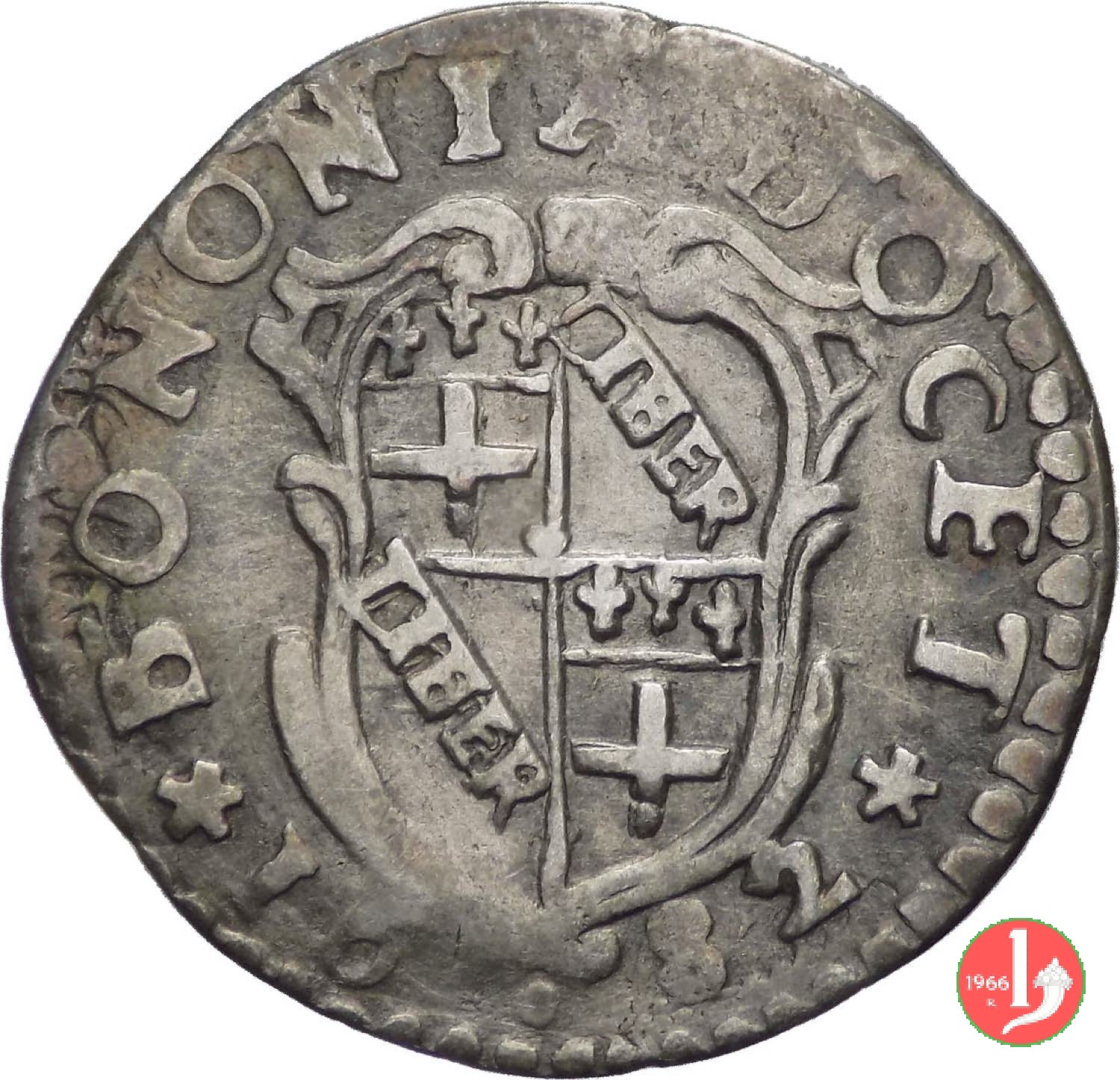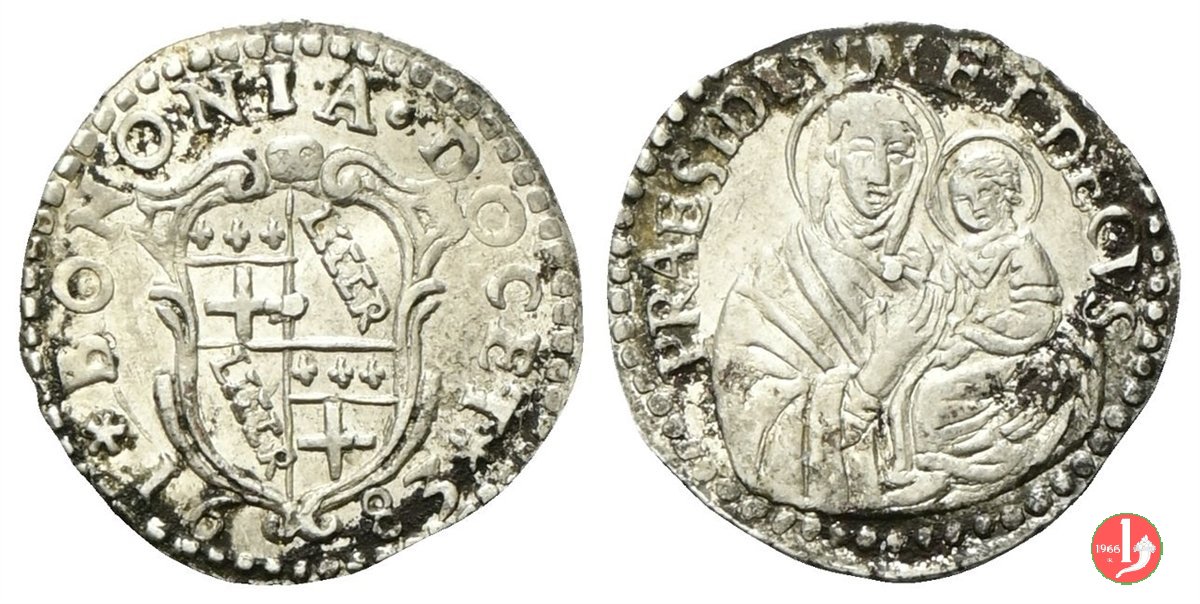*BONONIA •DOCET*, stemma della citta'. In basso millesimo *PRAESIDIUM •ET •DECUS, madonna con bambino.