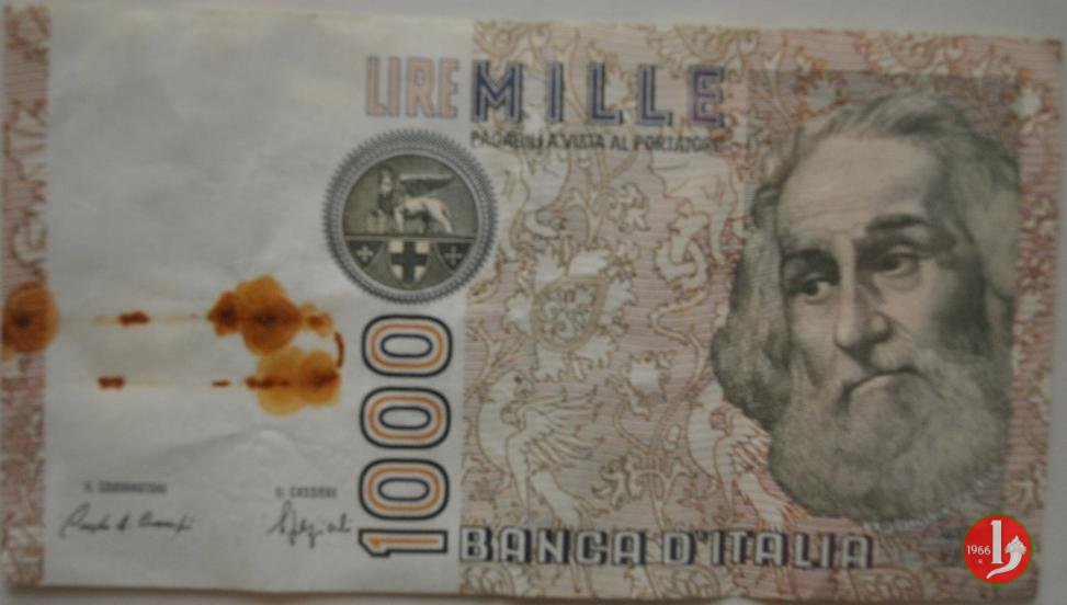 2 Circolare della Banca d'Italia dell'agosto 1988: "Si comiunica che, al fine di migliorare gli elementi di sicurezza e di agevolare il trattamento meccanizzato, nel biglietto da 1.000 lire è stato inserito un nuovo filo di sicurezza che presenta una colorazione piú intensa e proprietà fisiche diverse rispetto al precedente"