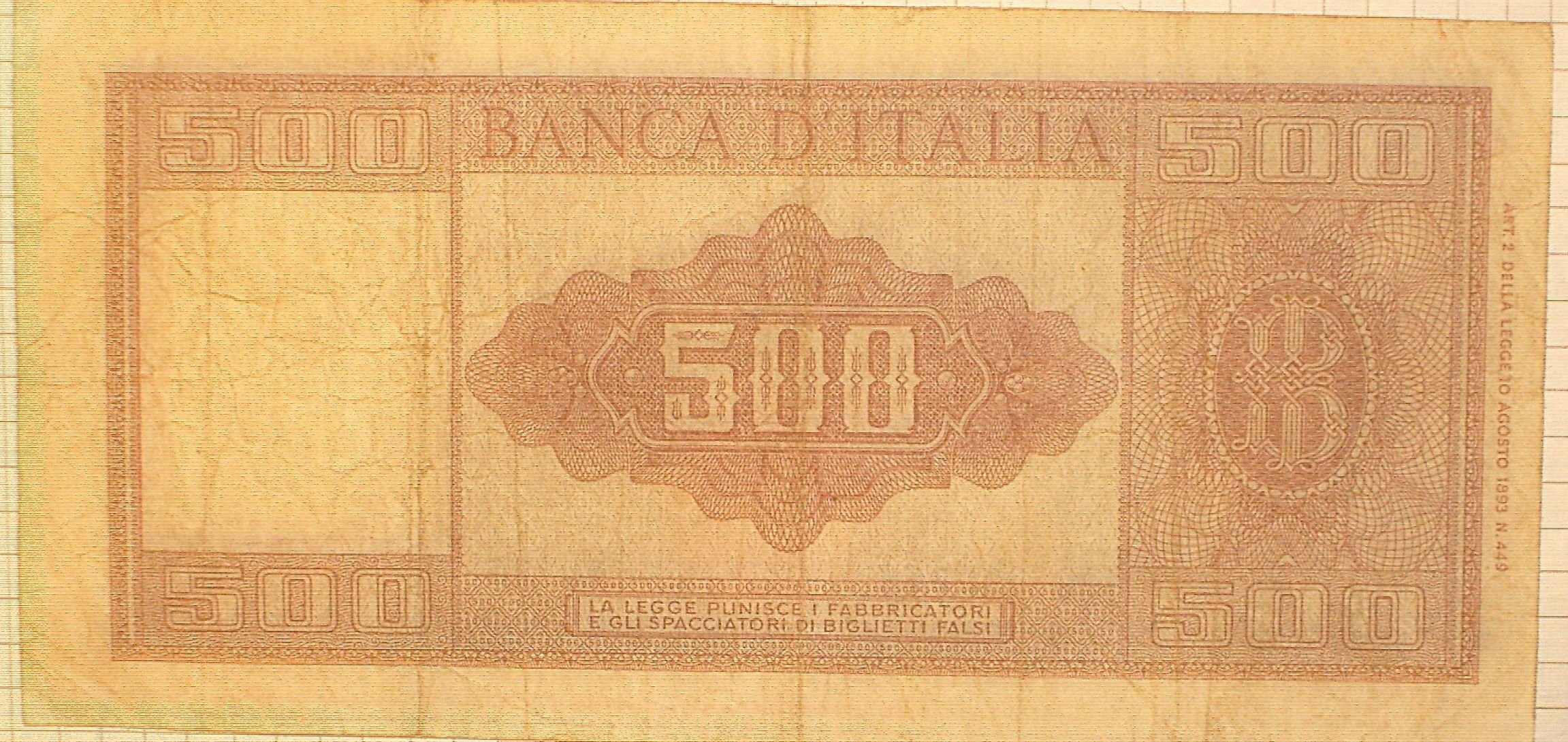 | 500 lire Italia ornata di spighe (Banconota) | |||||||
