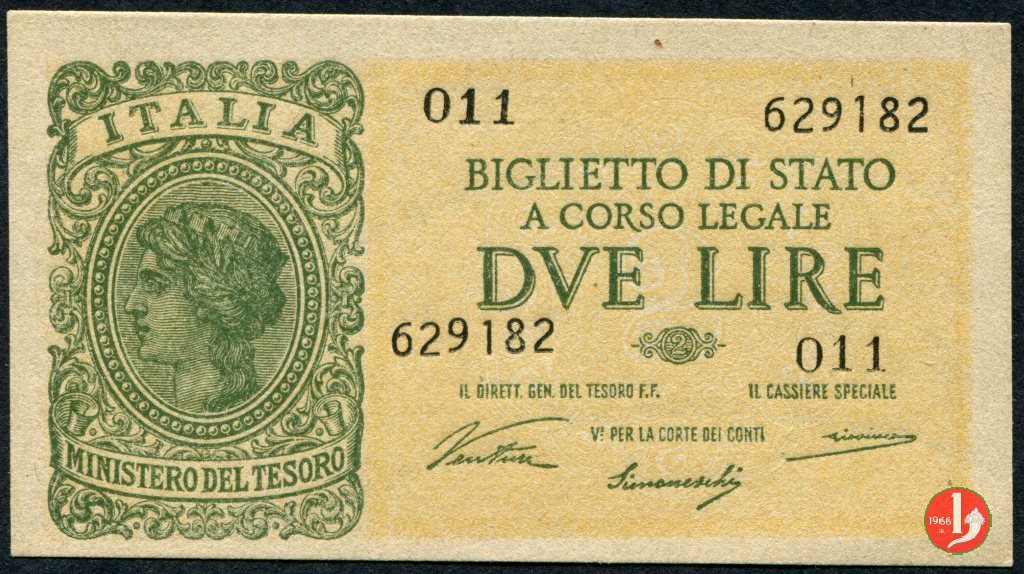 | 2 Lira "Italia Laureata" (Banconota) | ||||||||||||||