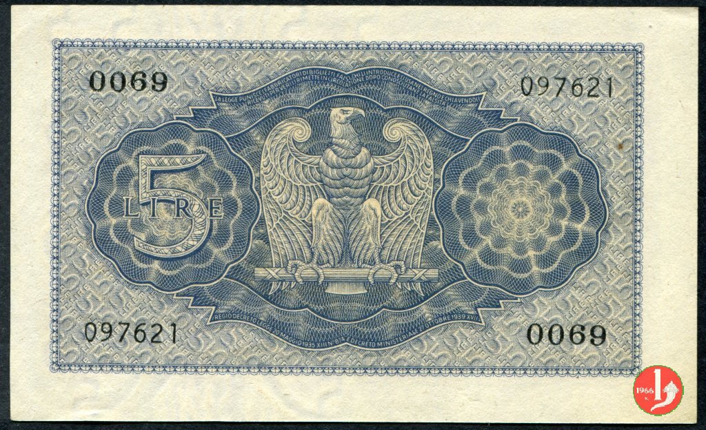 Effige di Vittorio Emanule III in divisa militare entro un ovale. Aquila romana nel centro poggiante su un fascio Littorio.