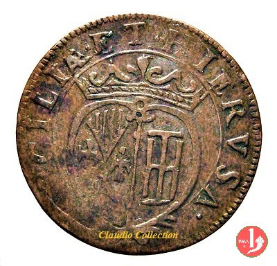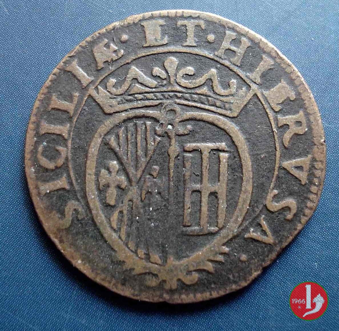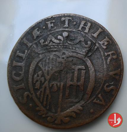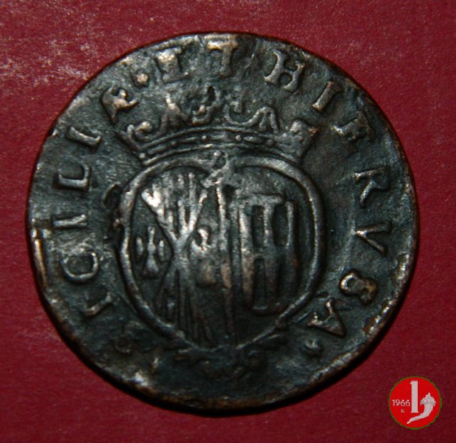 CAROLVS II D G REX, Busto del Re volto a dx, dietro e davanti il busto sigle, sotto la data (quest'ultima viene indicata con le ultime due cifre, quindi 1677 verrà indicato come 77) SICILIAE ET HIERVSA, stemma partito e coronato.
