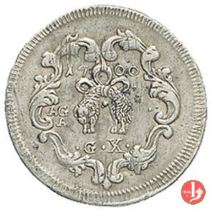 . CAR • II • DG • REX • • HISP • ET • NEAP • Busto coronato del re a dx, sotto •IM. • La data (divisa in due dal nastro che sorregge il tosone), Tosone volto a sx, a sx G, a dx X, sotto AG/A •