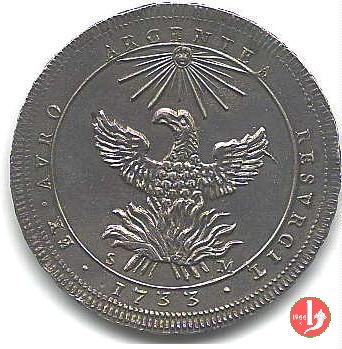 2 D\ CAROL • III • D • G • SICIL • ET • HIER • REX • R\ EX • AVRO ARGENTEA RESVRGIT in basso • 1733 •