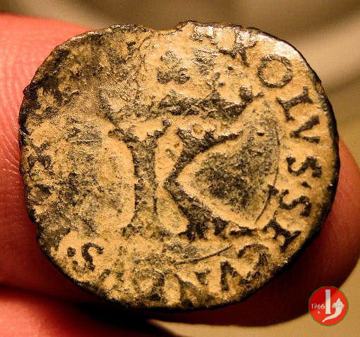 Ultimamente è stata rintracciato un esemplare inedito e qui fotografato con la legenda del diritto variata, non SECUNDUS ma SECONDUS come nei mezzi quarti di Piemonte.