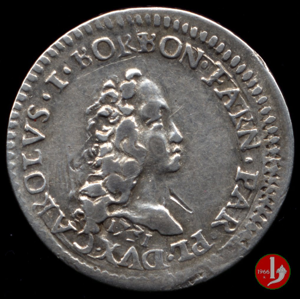 Testa nuda del Duca a destra. Intorno CAROLVS • I • BORBON • FARN • PAR • PL • DVX •. Sotto il taglio del collo, indicazione del millesimo (1731). All'interno di un padiglione coronato AUREVS MOX ADERIT.
