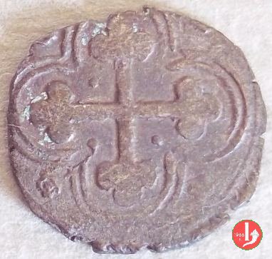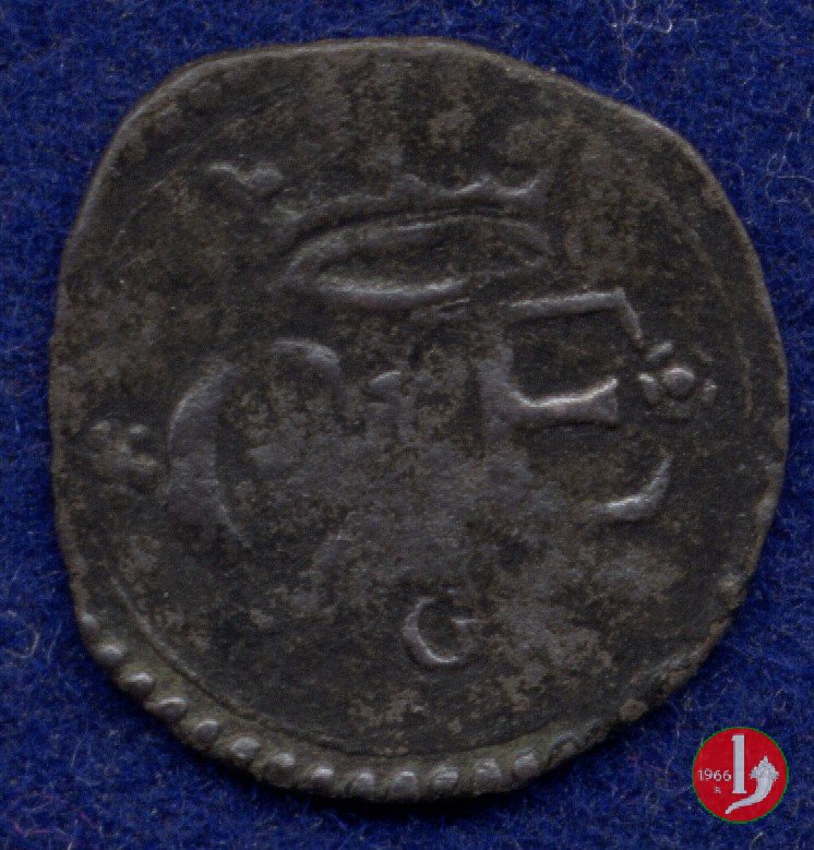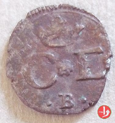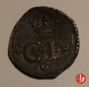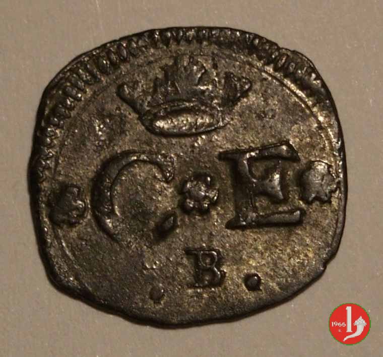 In tre righe: corona - rosetta C rosetta E rosetta - segno di zecca Croce mauriziana in una cornice quadrilobata doppia, con dei globetti o delle rosette alle punte e agli angoli, non sempre in basso il segno di zecca