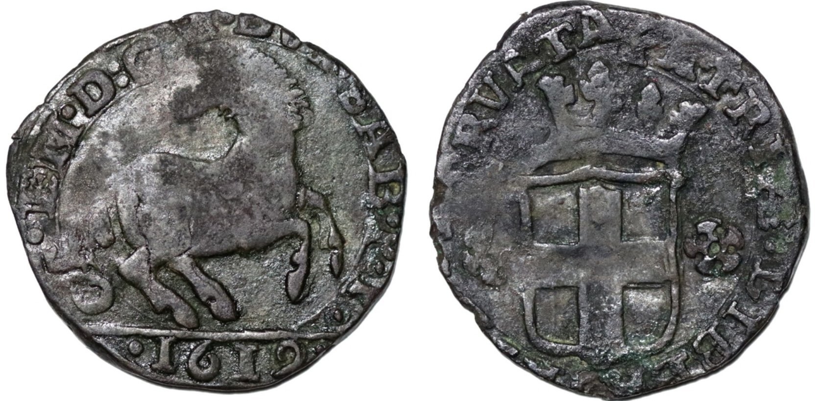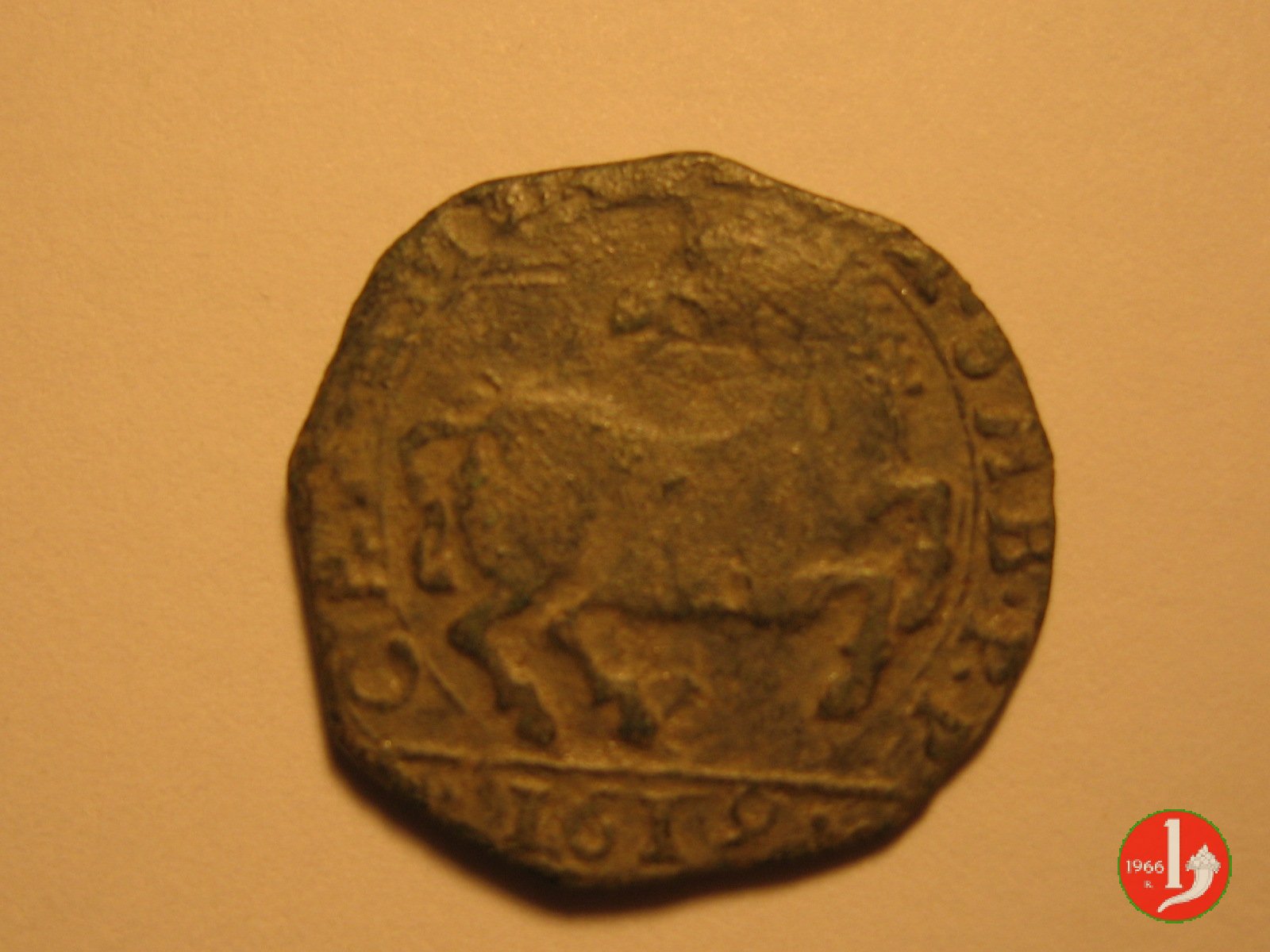 Gli esemplari del 1618 coniati a Vercelli presentano una lettera V tra le gambe del cavallo, ma secondo il Traina non presentano le rosette ai lati dello scudo quindi appartengono al secondo tipo.