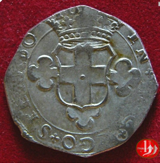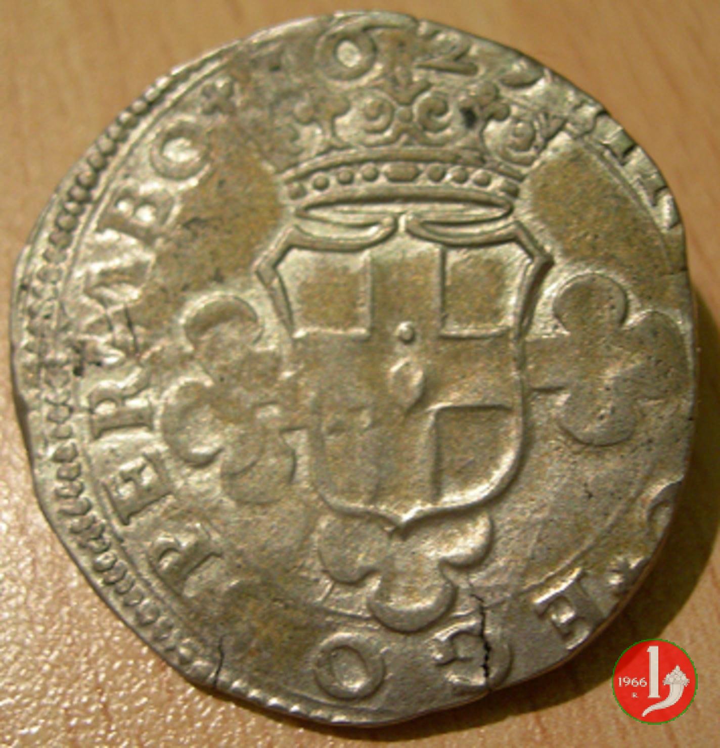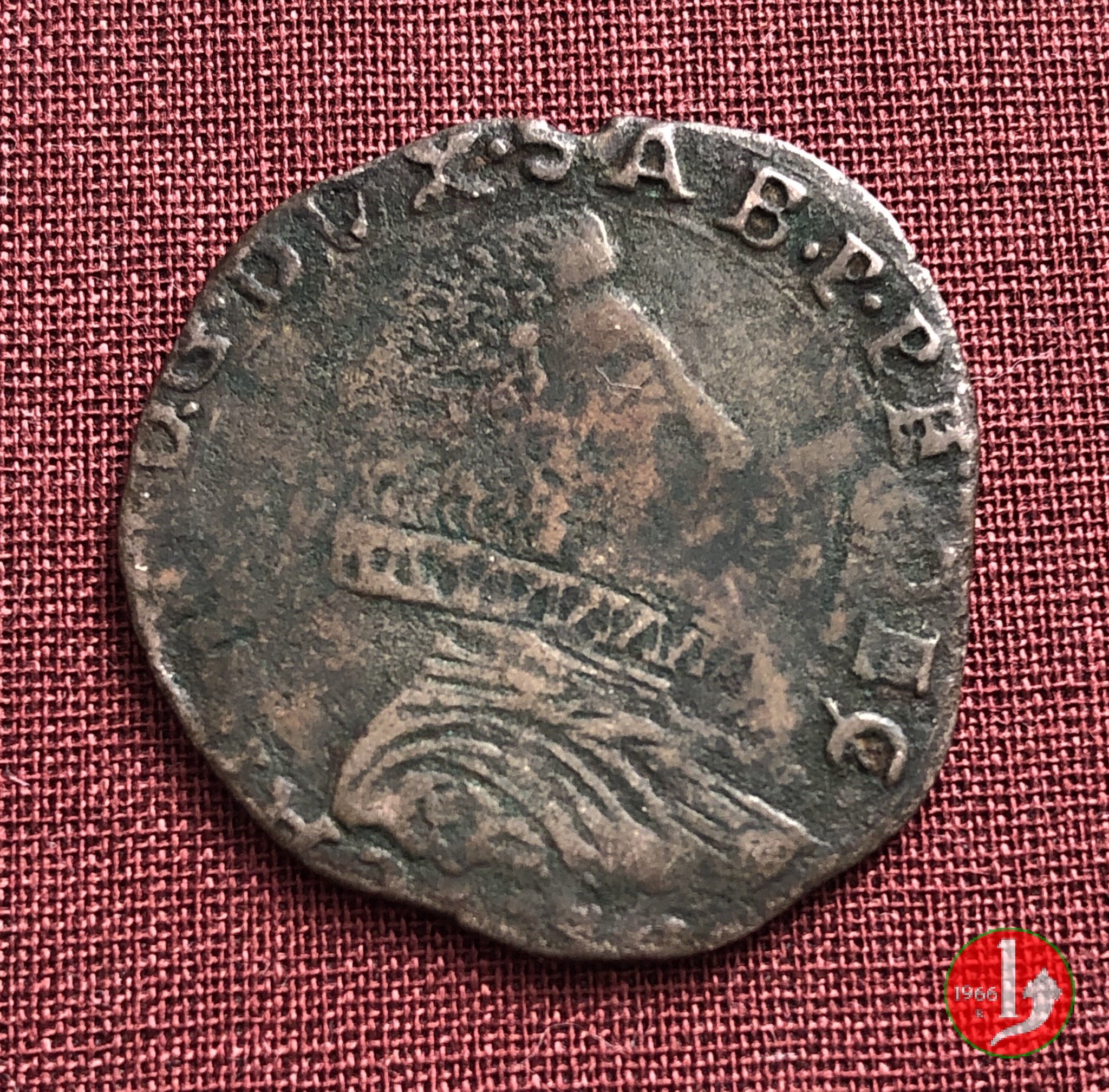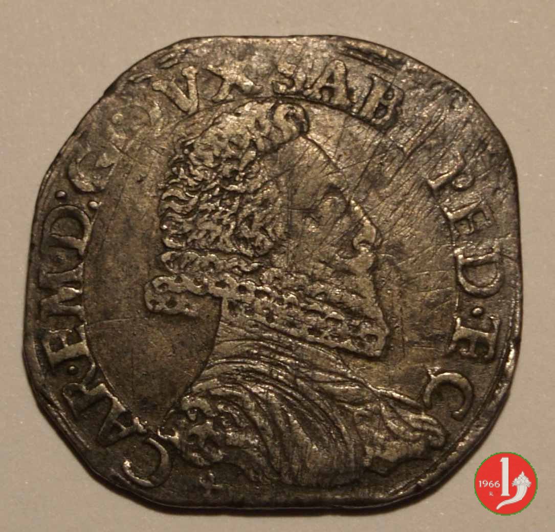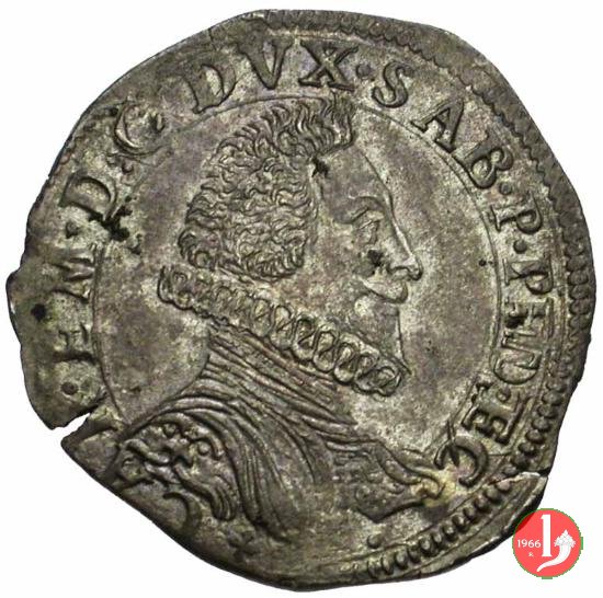 Busto del duca corazzato rivolto a destra, sotto può esserci il segno di zecca o una piccola croce mauriziana, intorno • CAR • EM • D : G • DUX • SAB • P • PED • EC Scudo semplice coronato sopra ad una croce mauriziana, sopra la corona la data, intorno • IN • HOC • EGO • SPERABO •