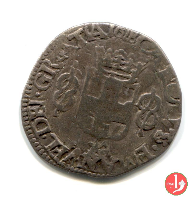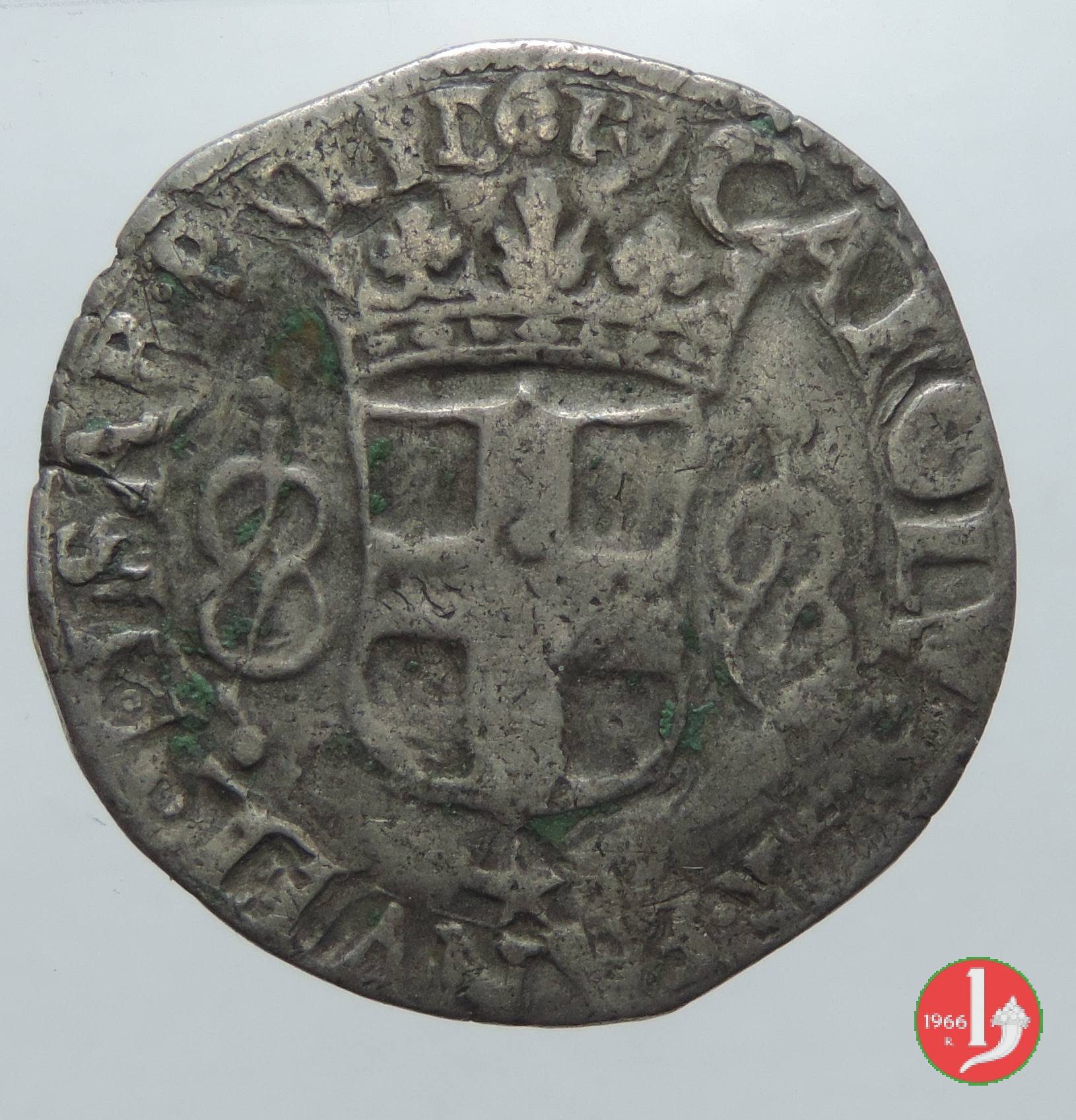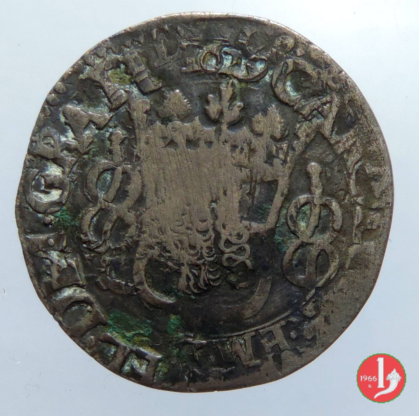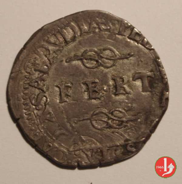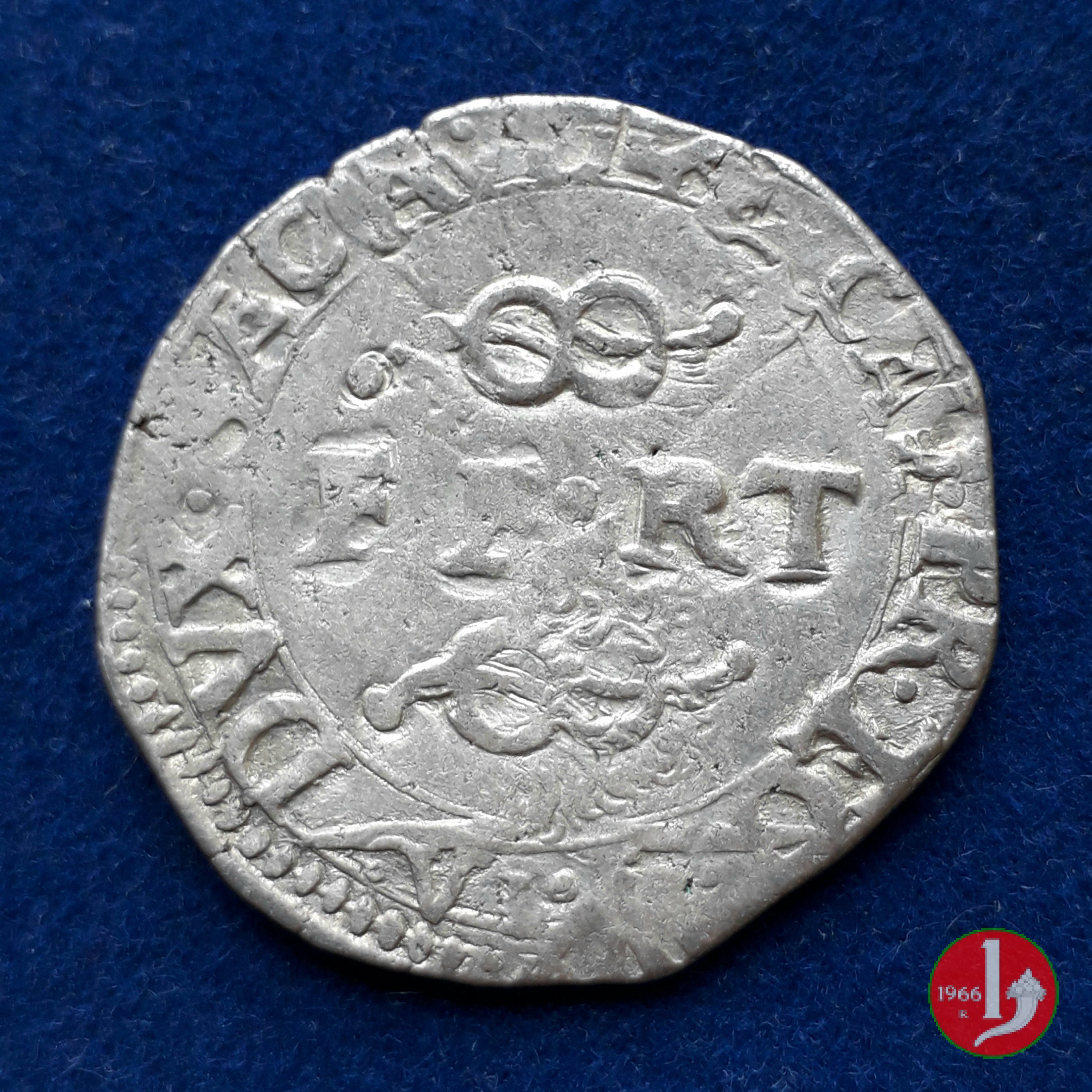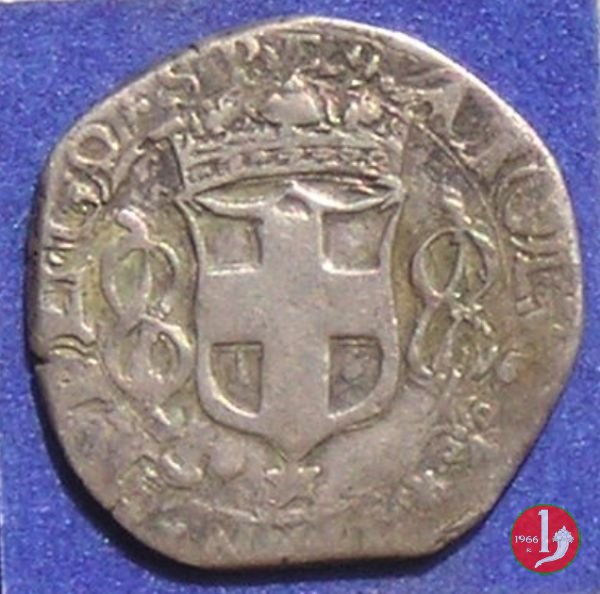 Scudo semplice coronato affiancato da due nodi savoia, sotto una stella, sopra la corona la data, intorno CAROLUS • EMANUEL • DEI • GRAT In tre righe: nodo savoia - FE • RT - nodo savoia, in esergo il valore • VI • S • , intorno DUX • SABAUDIE • PED • PR • E • C