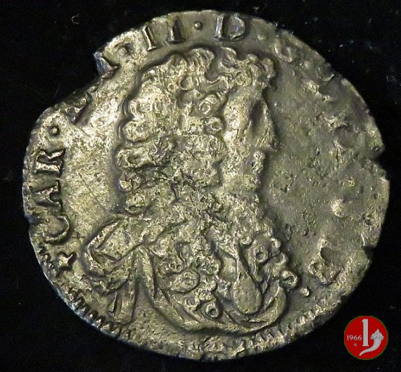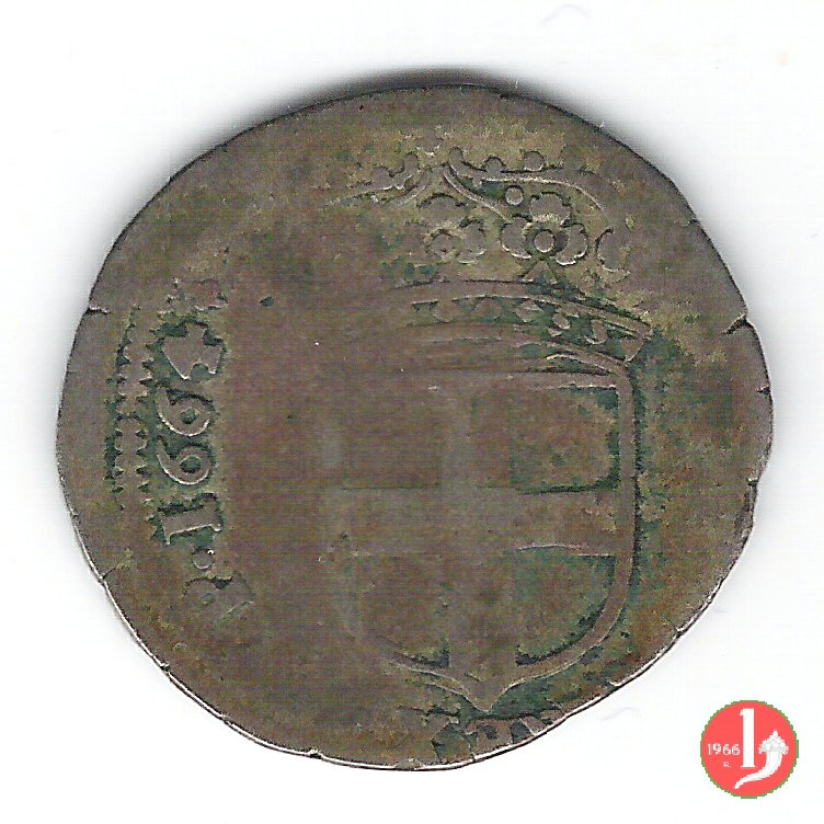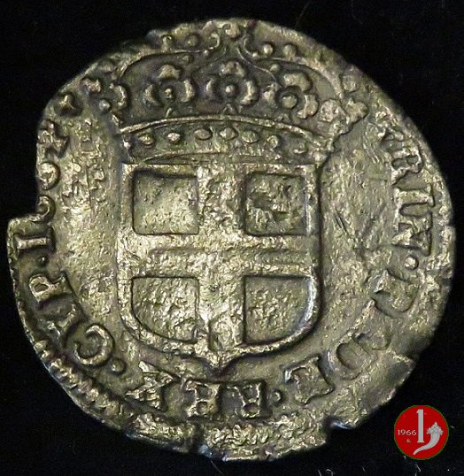 Busto del duca rivolto a destra, intorno: trifoglio CAR • EM • II • D • G • DUX • SAB • Scudo semplice coronato, intorno partendo da dopo la corona PRIN • PEDE • REX • CYP • data