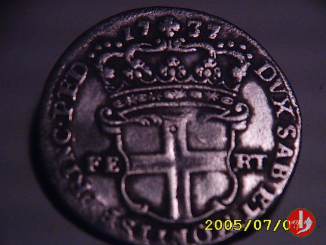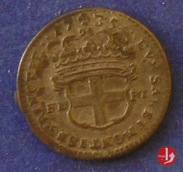 Busto del re con corazza rivolto a destra, intorno CAR • EM • D • G • REX • SAR • CYP • ET • IER • Scudo sabaudo coronato con sopra la data e ai fianchi FE RT, intorno DUX • SAB • ET • MONTISF • PRINC • PED