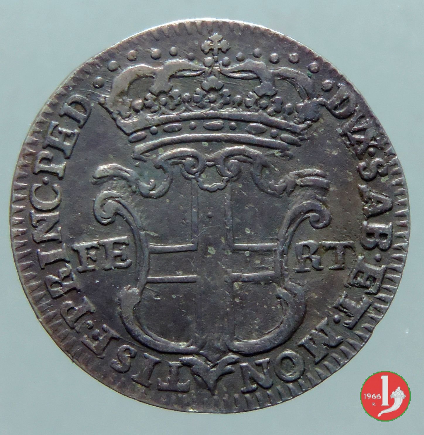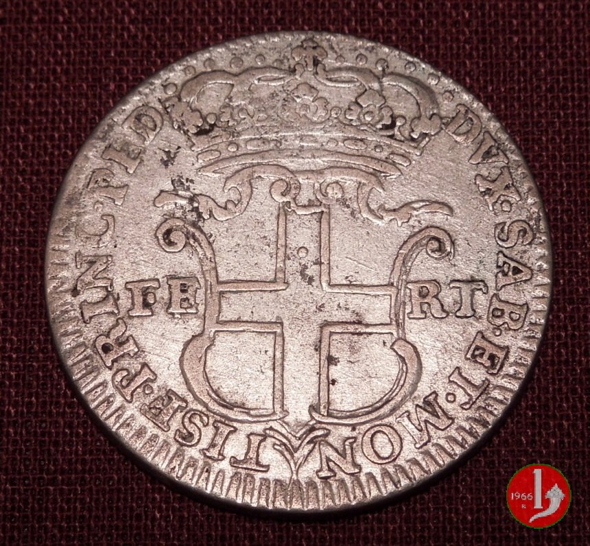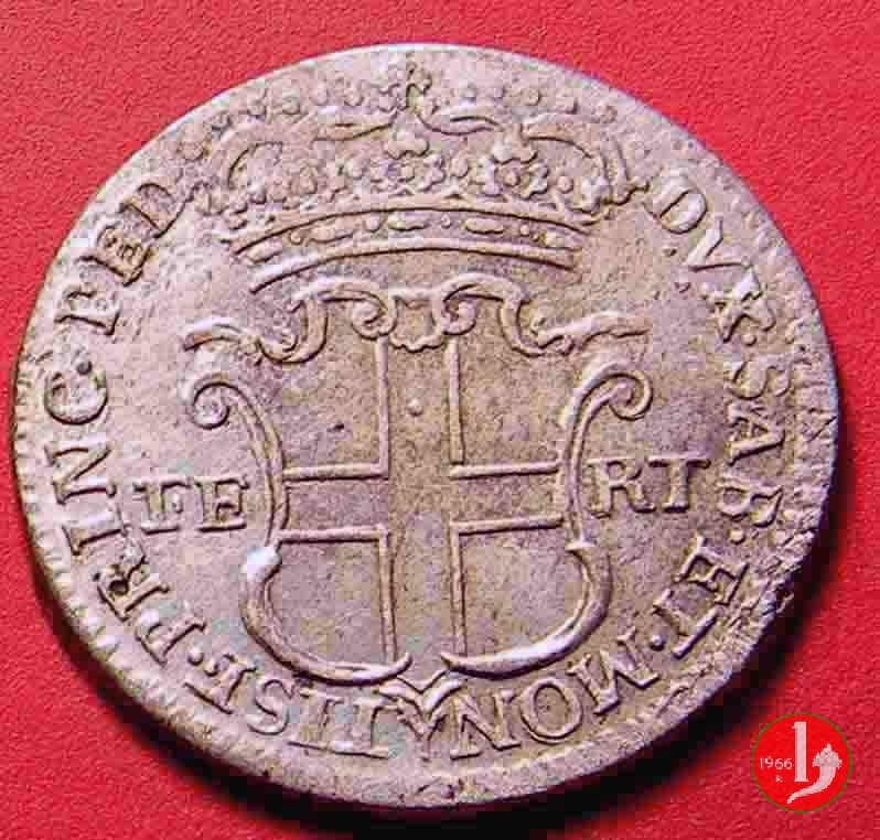 Testa nuda del re rivolta a sinistra con sotto il collo la data, intorno CAR • EM • D • G • REX • SAR • CYP • ET • IER • Scudo sabaudo coronato, ai lati FE RT, intorno DUX • SAB • ET • MON TISF • PRINC • PEDEM •