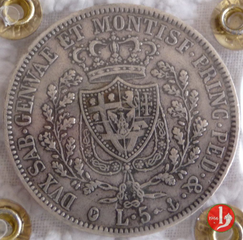 | Segno di zecca per Genova, P in incuso all'interno di un ovale e ancora. Segno di zecca per Torino, P in incuso all'interno di un ovale oppure L in incuso all'interno di una losanga e testa d'aquila. | |||||||||