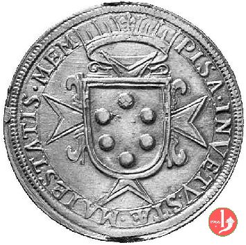 7 D/ rosetta 8 petali COSMVS rosetta 8 petali II rosetta 8 petali MAGN rosetta 8 petali DVX rosetta 8 petali ETR rosetta 8 petali IIII • triangolino 1618 triangolino R/ PISA •IN VETVSTAE •MAIESTATIS •MEMO (CNI XI n.8)