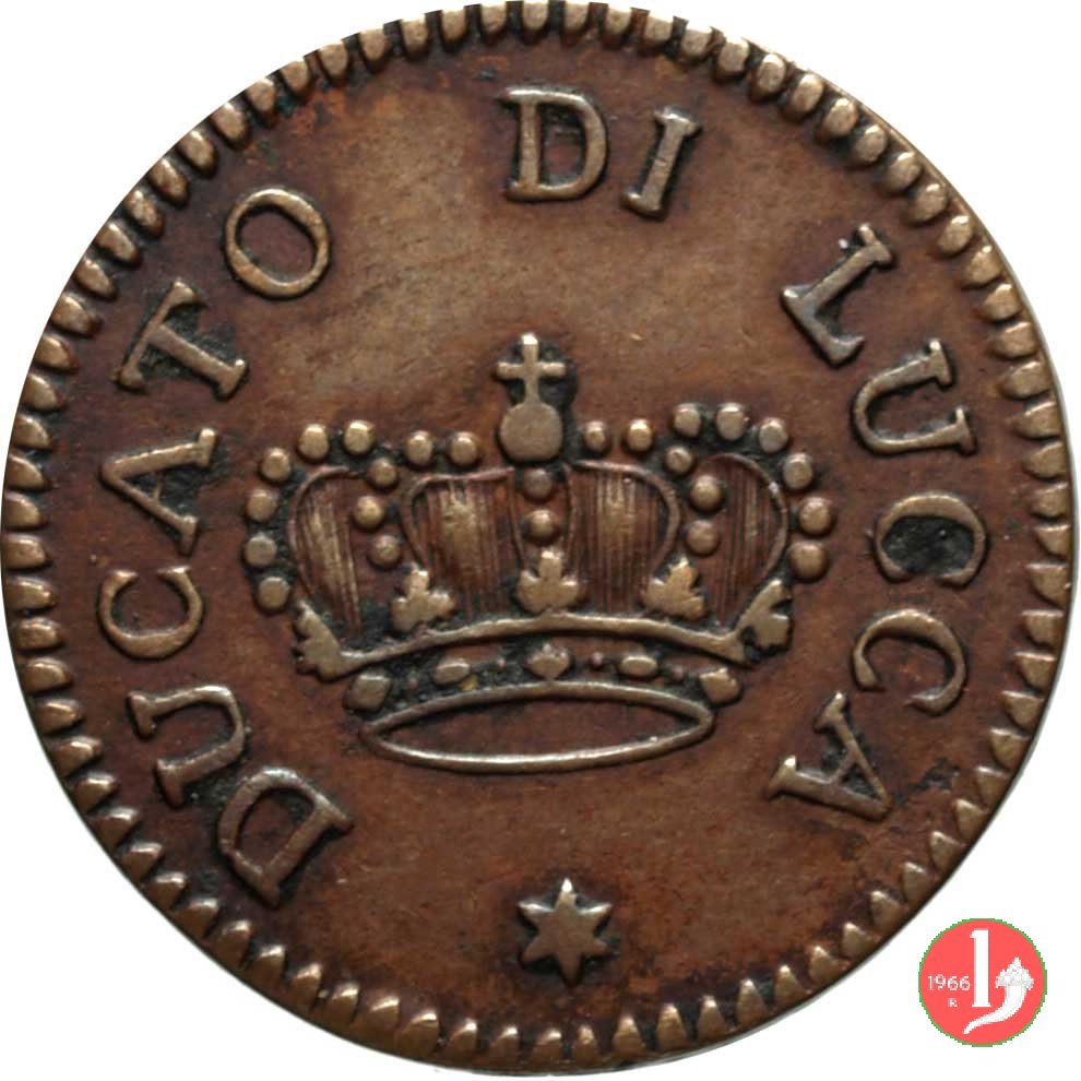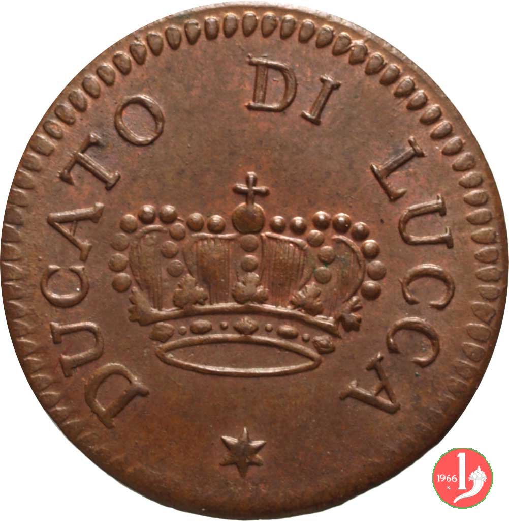 Nel campo corona. Nel giro, DUCATO DI LUCCA, in basso stella a sei punte nel Campo su tre righe MEZZO / SOLDO / (data)