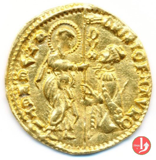CRISTOF' • MAVRO S • M • VENETI, S.Marco porge il vessillo al doge inginocchiato, lungo l'asta DVX SIT • T • XPE • DAT' • Q • TV REGIS • ISTE • DVCAT' • , il Redentore in mandorla stellata