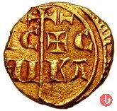 Croce latina accostata dalle sigle ICXC  e con cerchietto / NI KA, negli spazi superiori della croce tre globetti a piramide su uno stelo. Sotto la base dell'asta un cerchio accostato da due stelle a cinque punte.