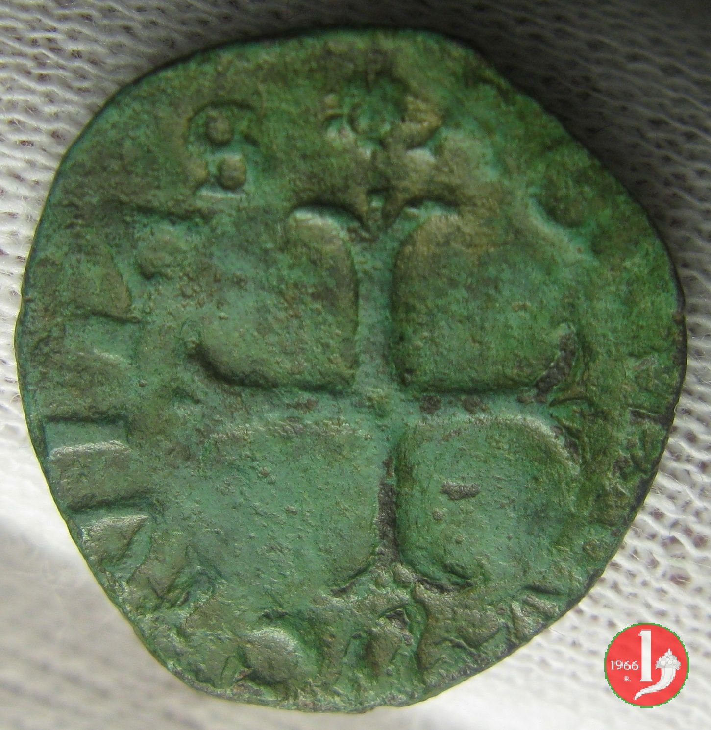 | Varianti. La croce può essere inscritta in uno, due o tre cerchi lineari. Un'altra variante riguarda la parte superiore dello stemma al Dritto, che può essere lineare o curva. L'interpunzione può essere fatta con stellette. | |||||||||||||