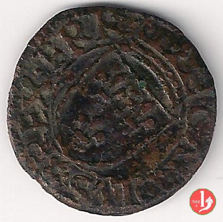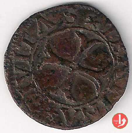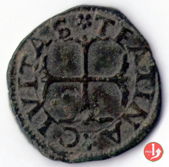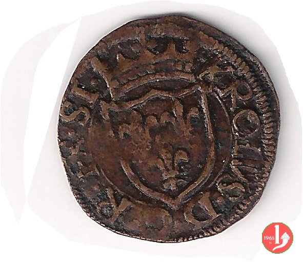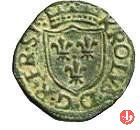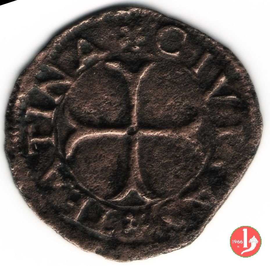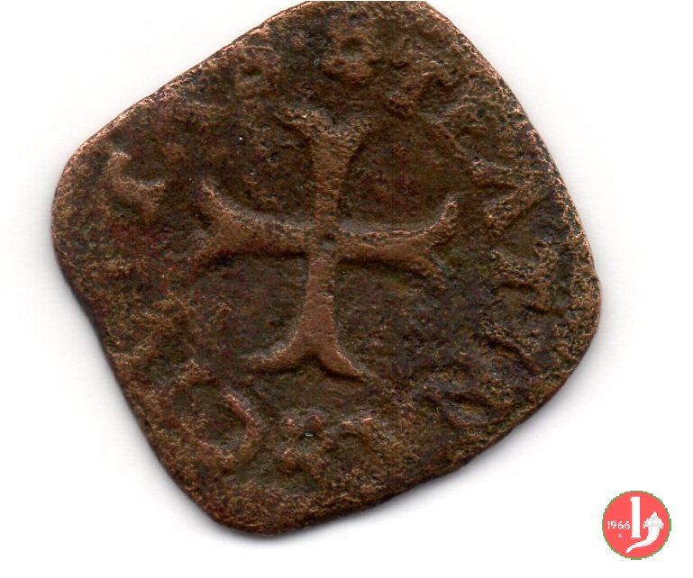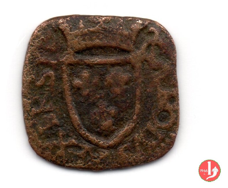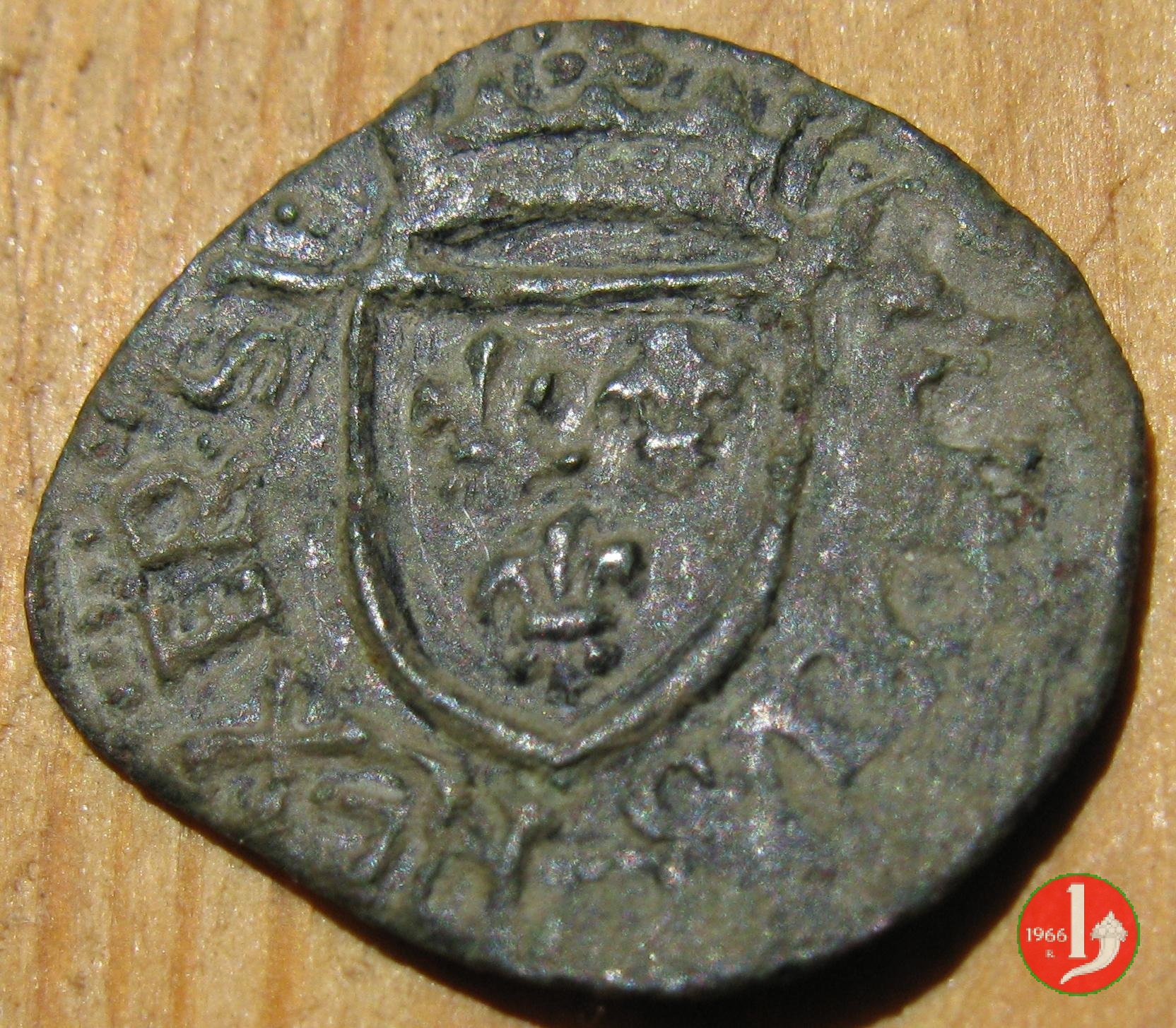 CΛROLVS.REX.FRR, Stemma di Francia coronato. rosetta a 5 petali TEΛTINΛ rosetta a 5 petali CIVITΛS, Croce ancorata.