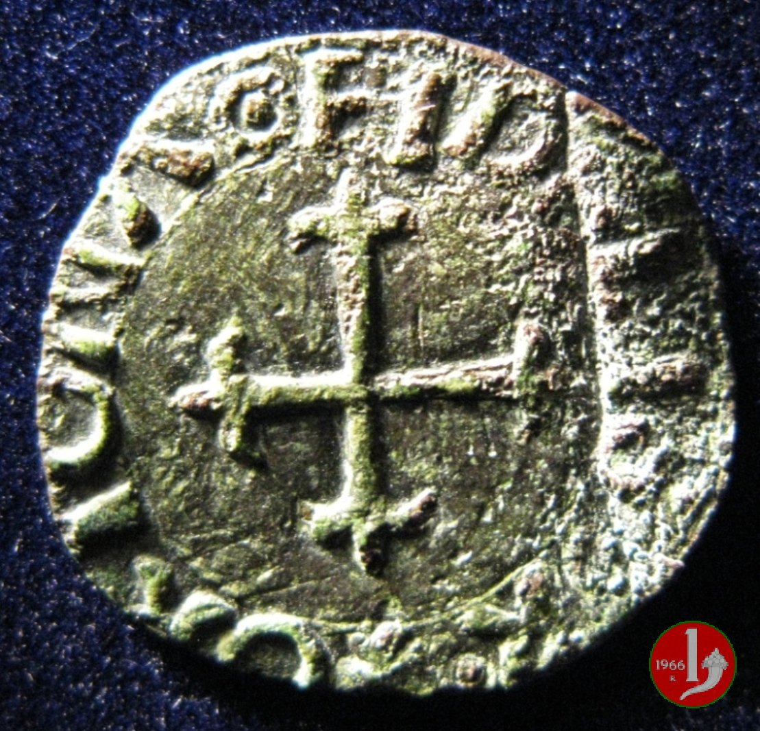 KROLVS:D:G:REX *, Stemma di Francia coronato. +ORTONΛ * +FIDELIS.R.F, Croce trifogliata.