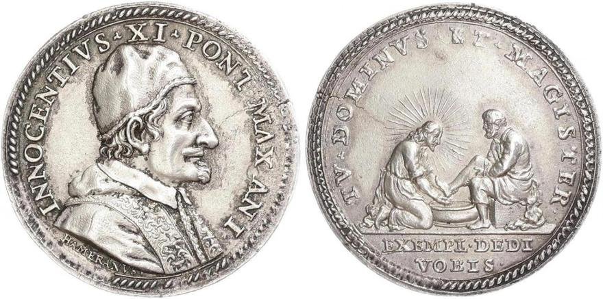 | Medaglia annuale della lavanda coniata, emessa il 15-04-1677 per ricordare la celebrazione "In Coena Domini" del Giovedí Santo con la tradizionale "Lavanda dei piedi". | ||||||