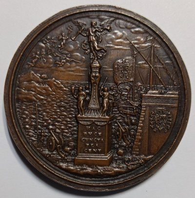 Medaglia coniata, datata 1678, ma realizzata nel 1679 quale omaggio a Ludovico Fernandez Portocarrero (1629-1709), arcivescovo di Toledo, vicerè e Capitano Generale di Sicilia tra il 1677 e il 1678. | |||||||