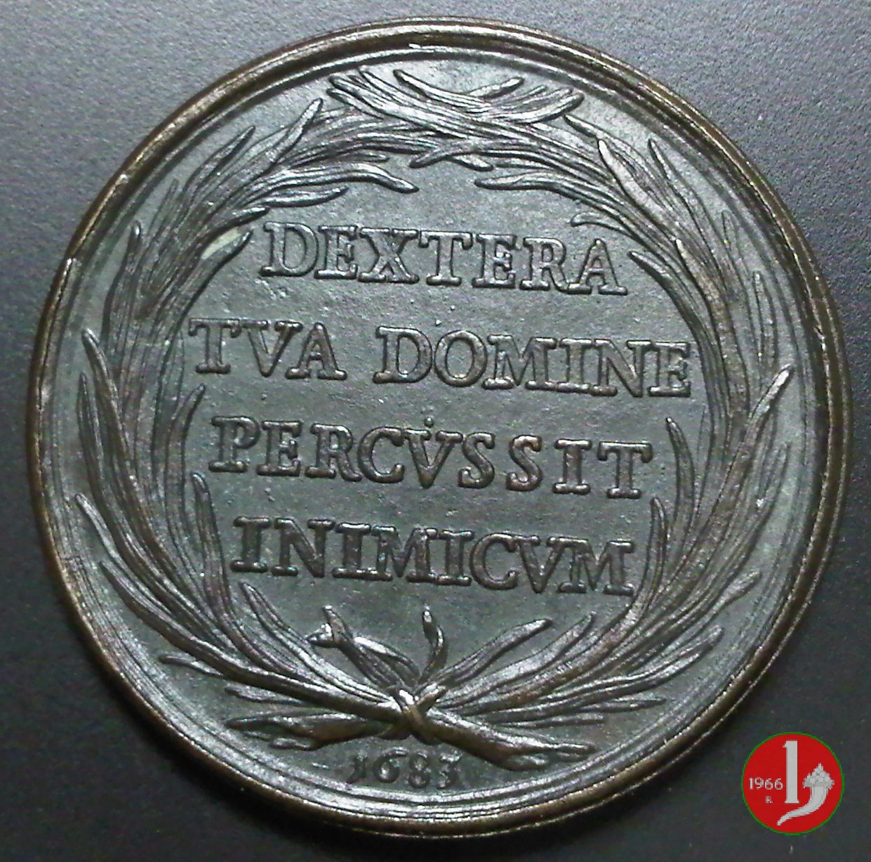 tra rami di palma: DEXTERA = TVA DOMINE = PERCVSSIT = INIMICVM