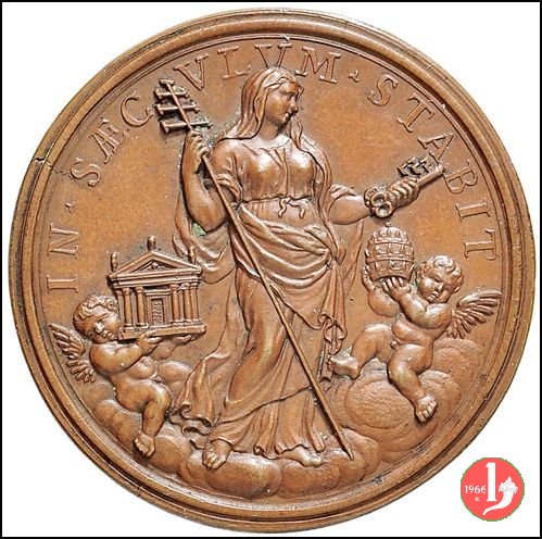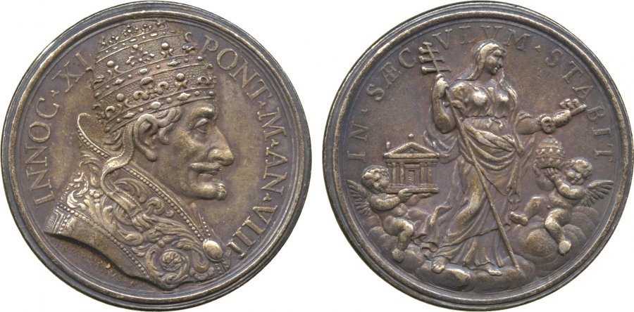 | Medaglia annuale coniata, emessa il 29-06-1684, a ricordo dell'Alleanza contro l'Impero Turco. | |||||||
