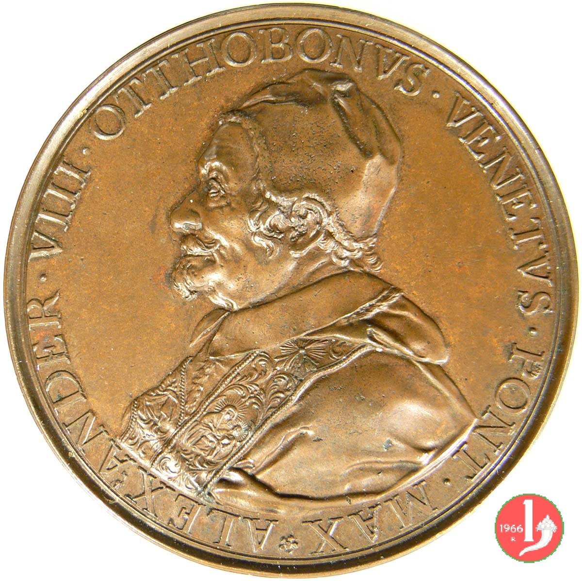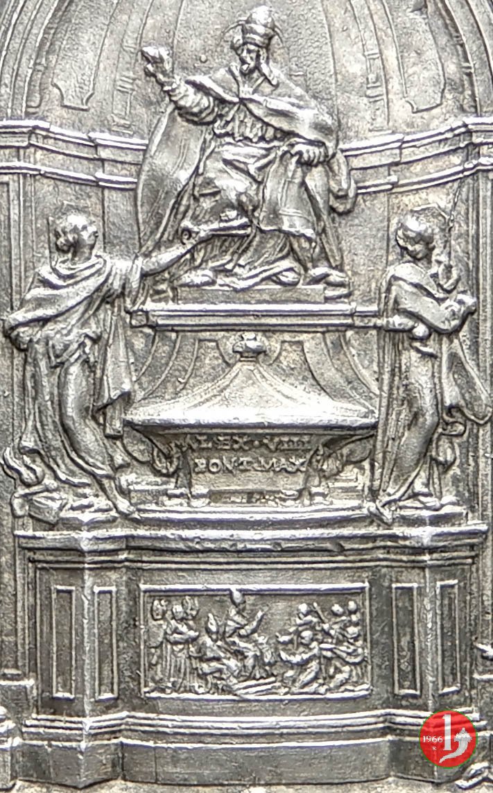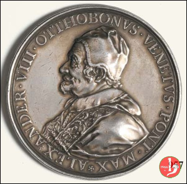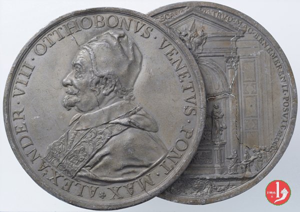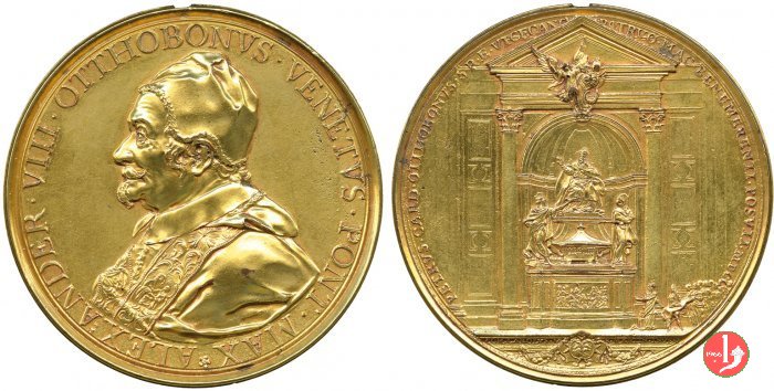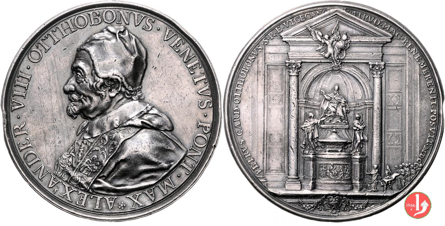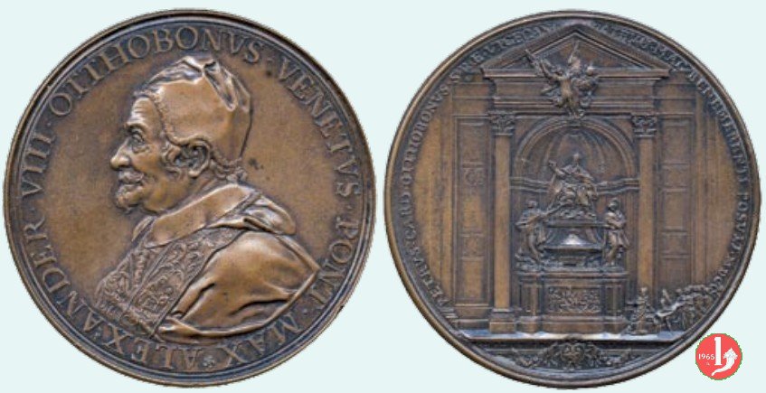| Medaglia postuma coniata, emessa nel 1700, in occasione dell'innaugurazione del Monumento funebre di Alessandro VIII all'interno della Basilica Vaticana. | ||||||