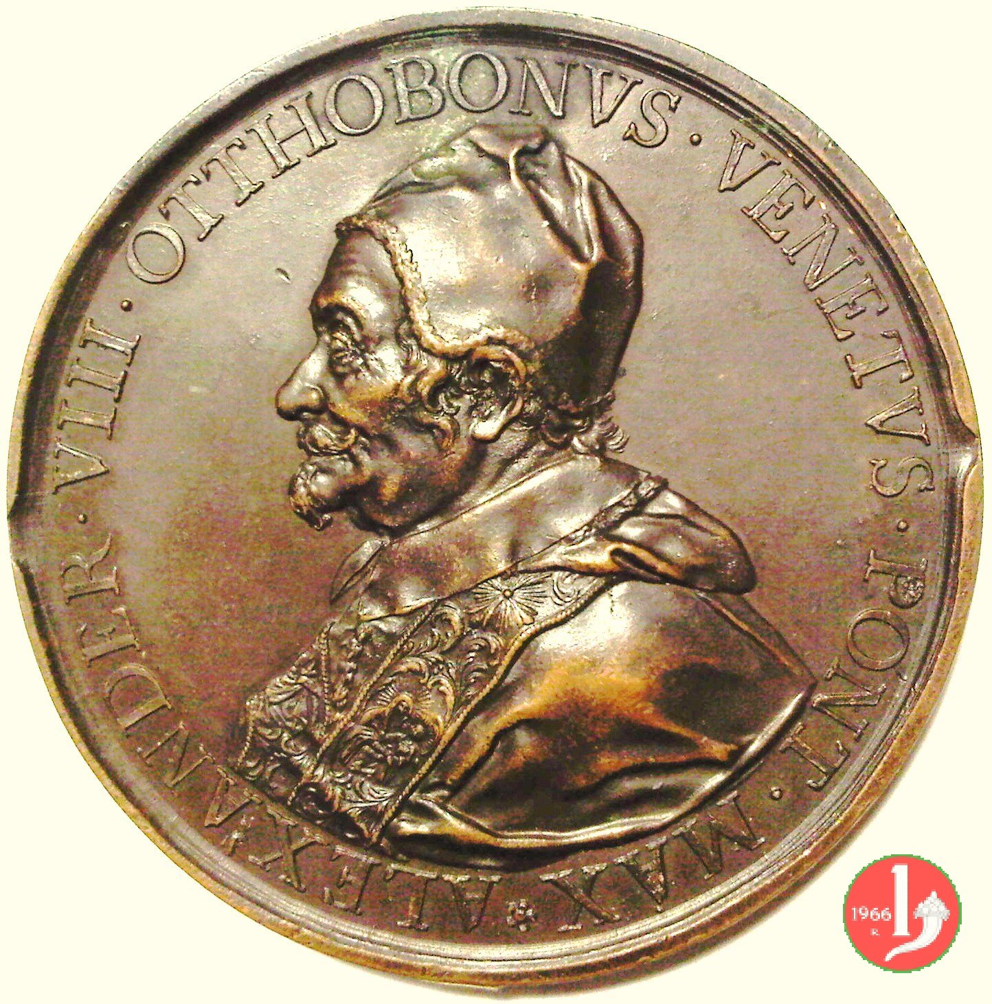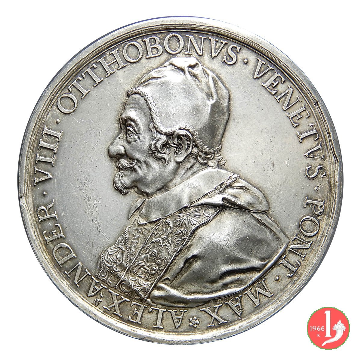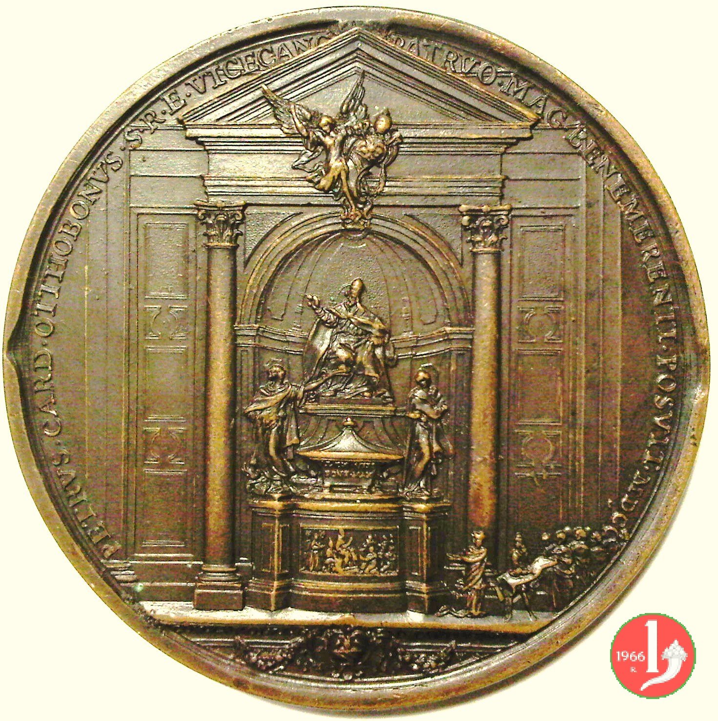 | Medaglia postuma coniata, emessa nel 1700, in occasione dell'innaugurazione del Monumento funebre di Alessandro VIII all'interno della Basilica Vaticana. | ||||||
