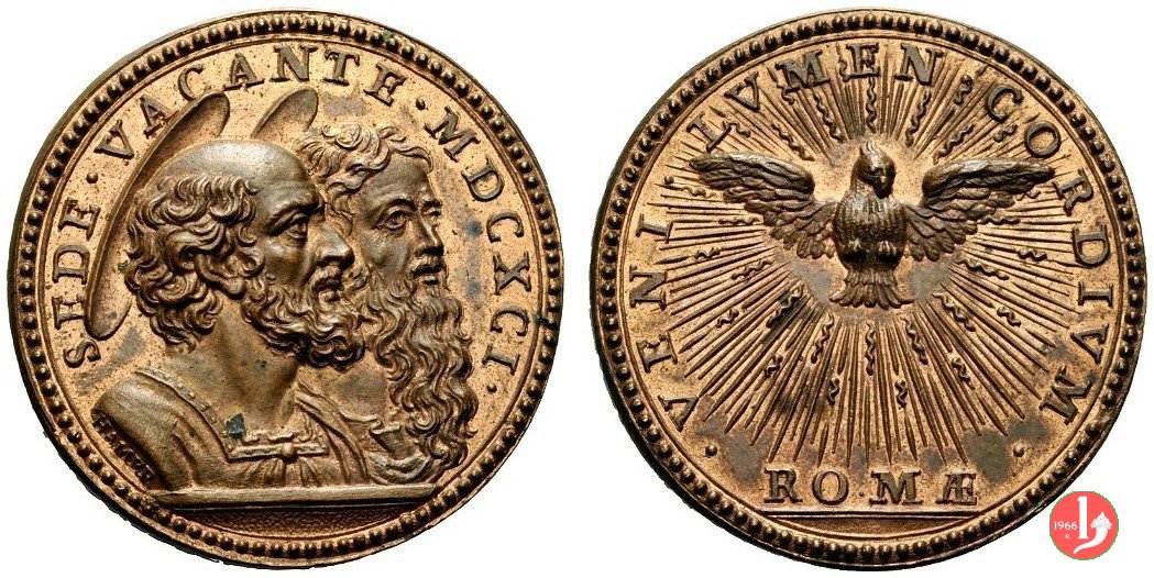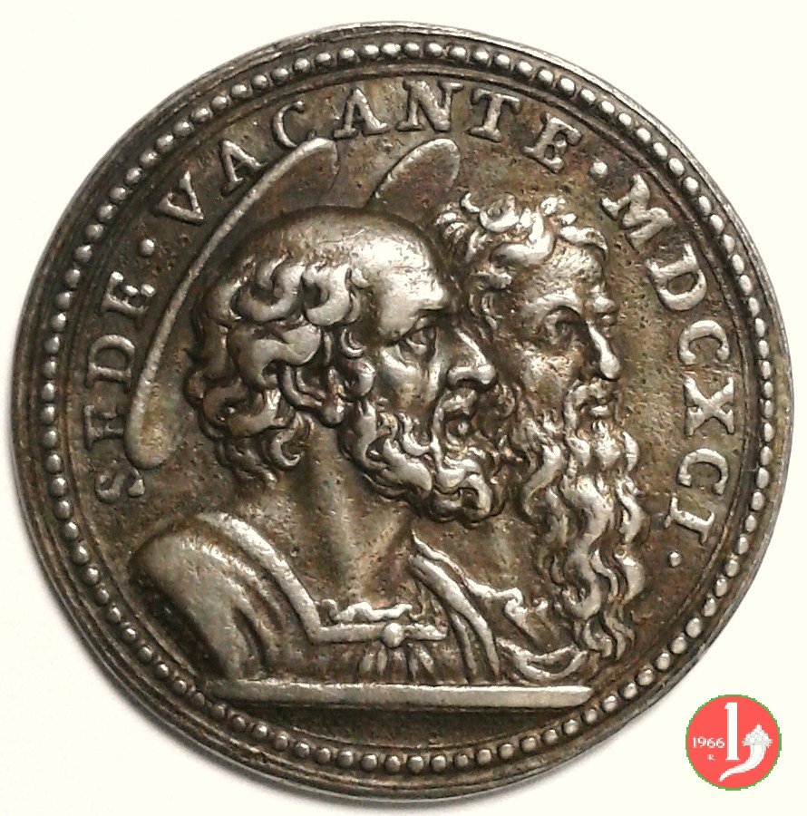 Medaglia annuale coniata, emessa il 29-06-1691 per la Sede Vacante.
