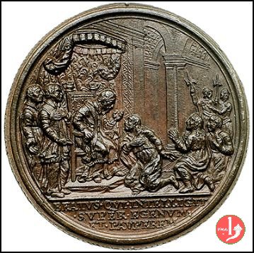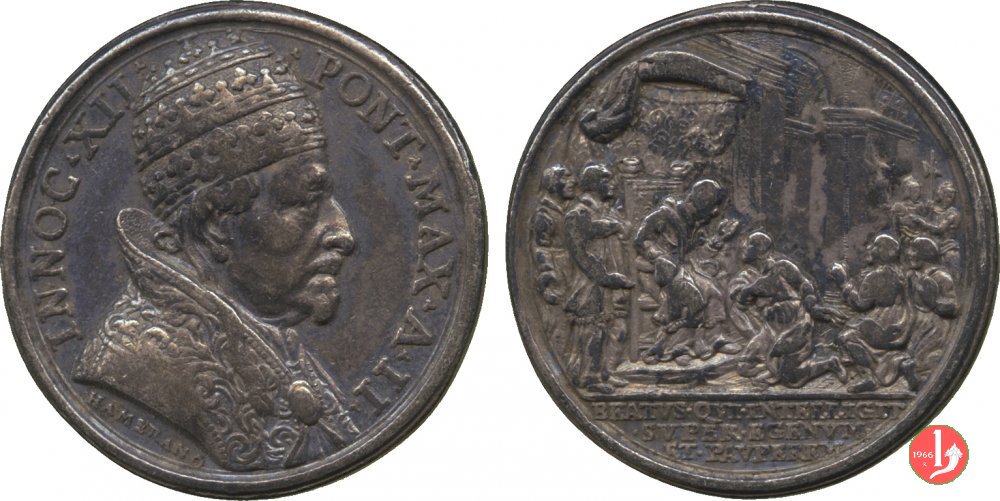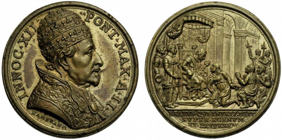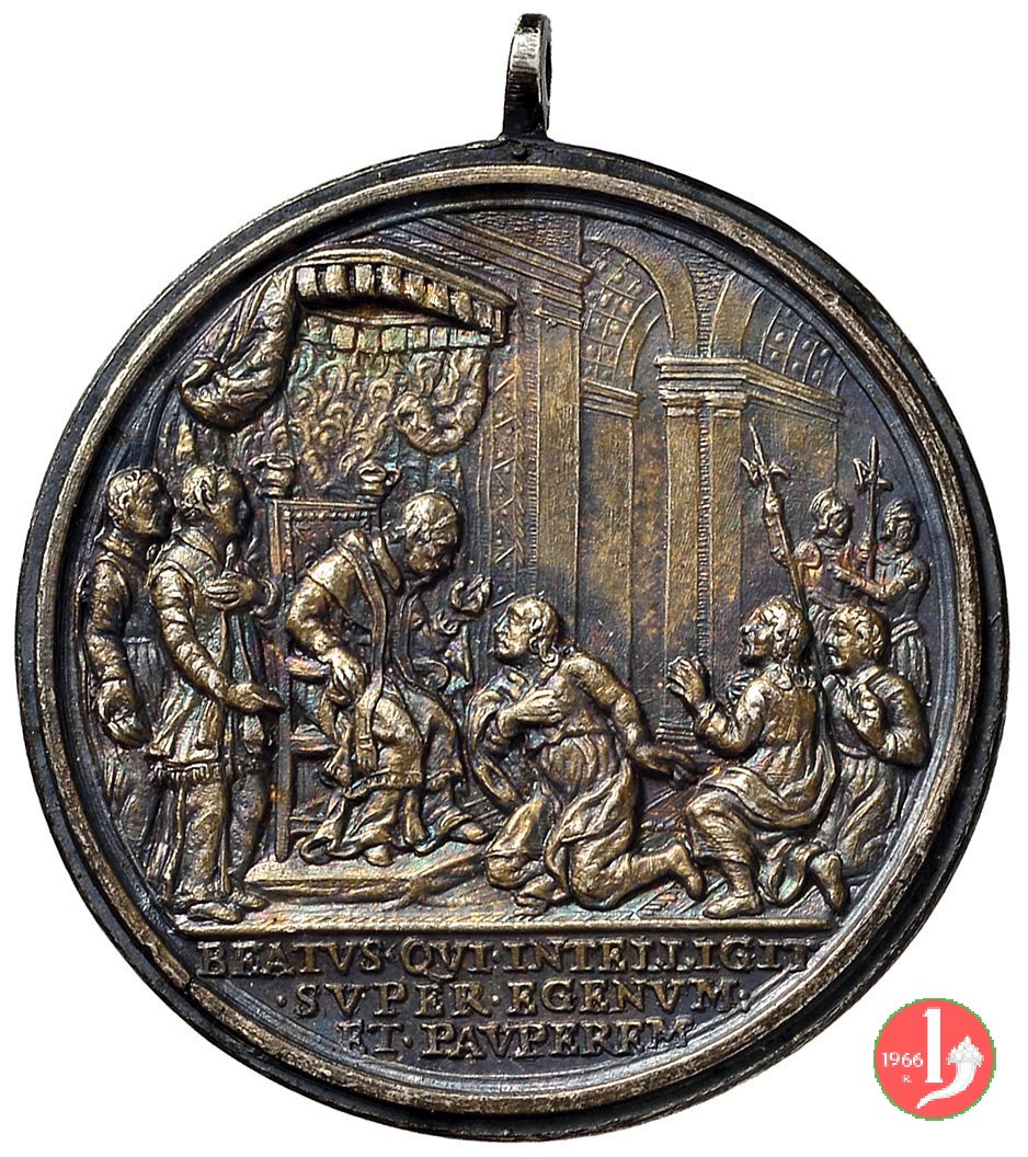 Medaglia annuale coniata, emessa il 29-06-1693, per ricordare le udienze per i poveri e i bisognosi, nonchè le varie opere svolte dal Papa a loro favore.