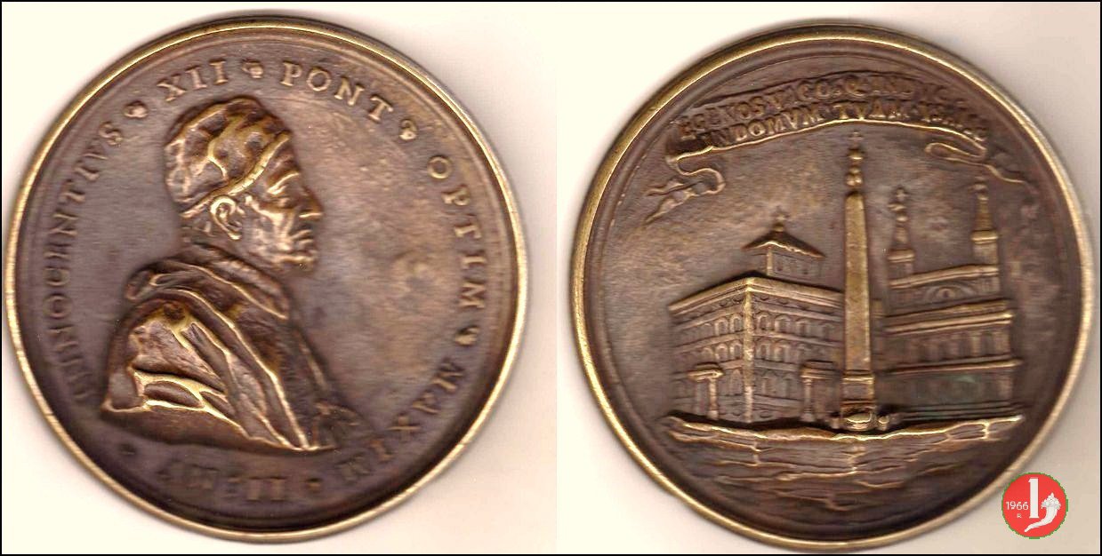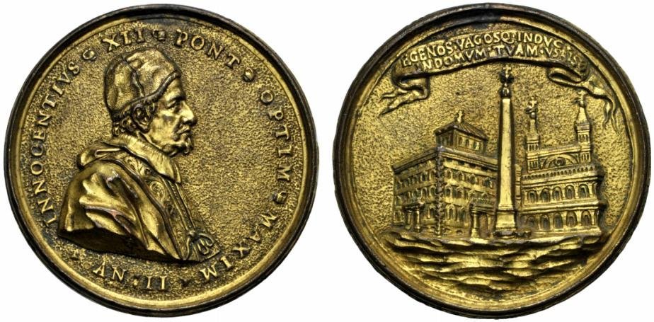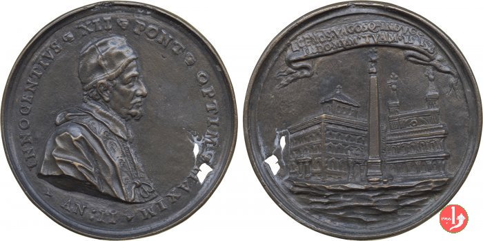 | Medaglia straordinaria fusa, emessa nel 1693, per ricordare la conversione del Palazzo annesso alla Basilica Lateranense in ospizio per i poveri. | ||||||