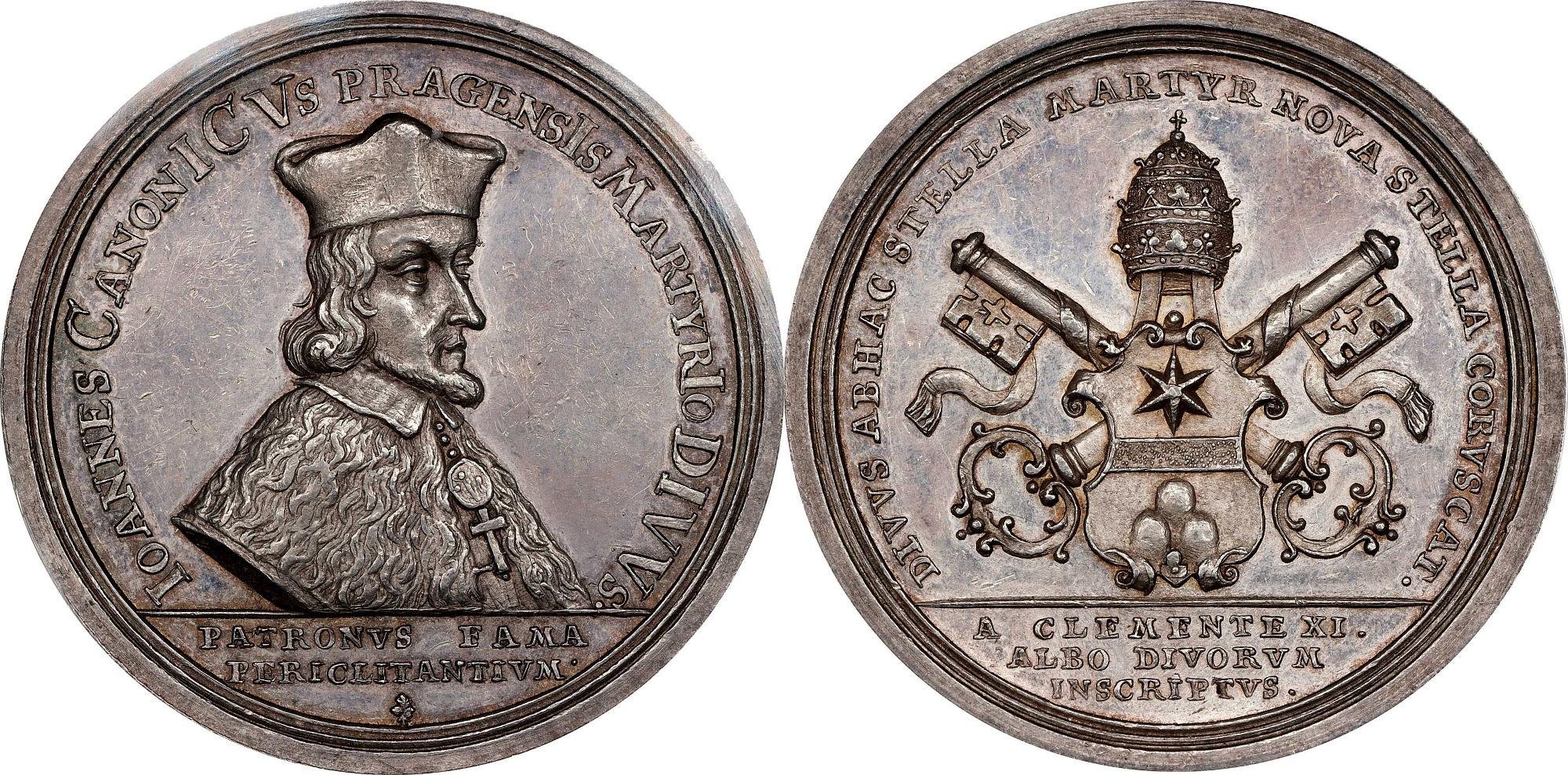 | Medaglia straordinaria coniata, emessa nel 1721 a ricordo della Canonizzazione di San Giovanni Nepomuceno. | |||||||