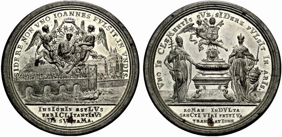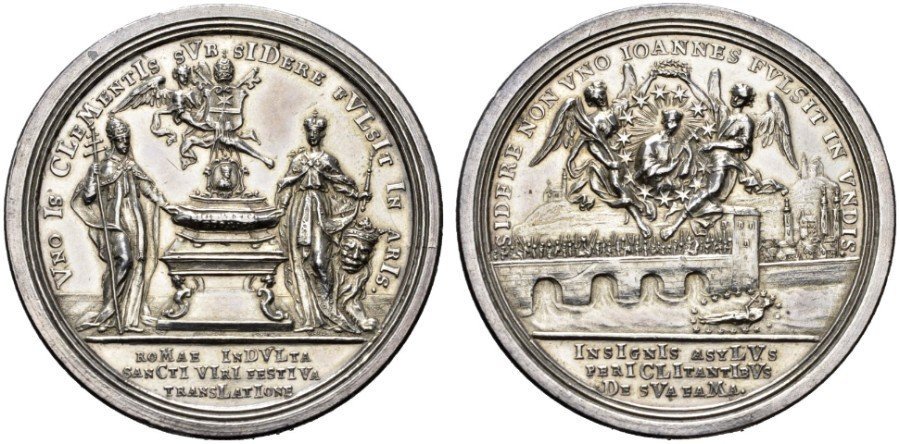 Medaglia straordinaria coniata, realizzata nel 1721 per ricordare la Beatificazione e la traslazione delle soglie di san Giovanni Nepomuceno (1349-1393).