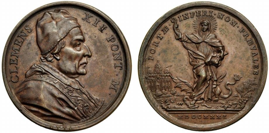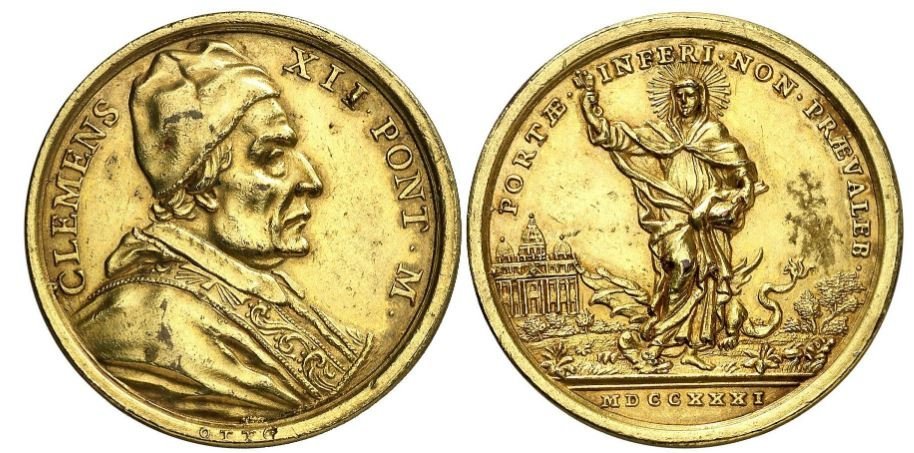 Medaglia straordinaria coniata, realizzata nel 1730 a ricordo dell'elezione al pontificato. Clemente XII fu eletto papa il 12 luglio 1730 nel Palazzo Apostolico e fu incoronato dal cardinale Lorenzo Altieri il 16 luglio. Scelse nome pontificale in onore di papa Clemente XI che l'aveva nominato cardinale. | |||||||