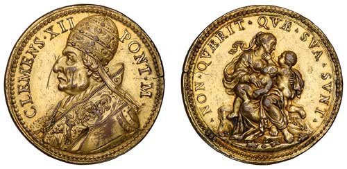 | Medaglia straordinaria coniata, realizzata a ricordo delle opere di Carità di Papa Clemente XII. | |||||||