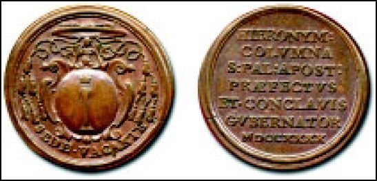 Medaglia coniata, realizzata per la Sede Vacante del 1740 dal Prefetto Mons. Geronimo Colonna.