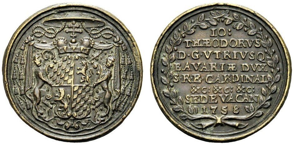 | Medaglia coniata, realizzata in occasione della Sede Vacante 1758 per il Cardinale Giovanni Teodoro di Baviera (1703-1763), Vescovo di Liegi. | ||||||||||||||||