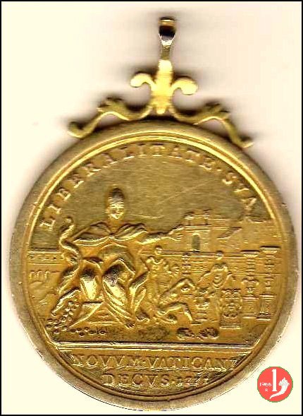 | Medaglia annuale coniata, emessa il 29-06-1771, a ricordo dell'istituzione del Nuovo Museo Clementino. | ||||||||