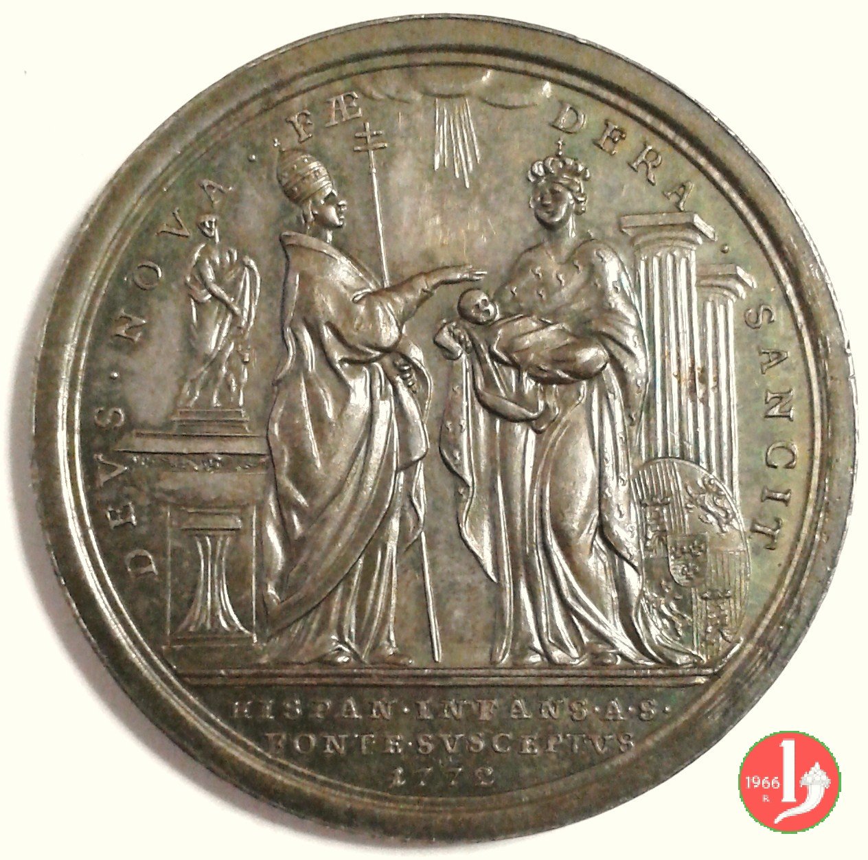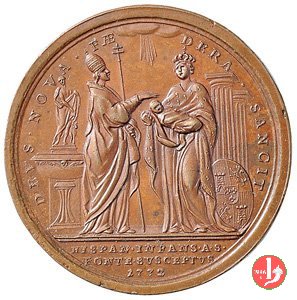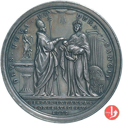 Medaglia annuale coniata, emessa il 29-06-1772 a ricordo del Battesimo dell'Infante di Spagna.