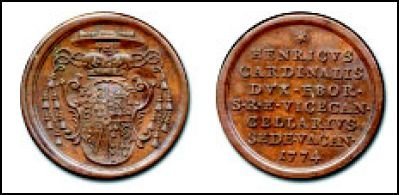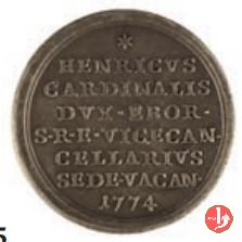 | Medaglia coniata, emessa per la Sede Vacante del 1774, dal Cardinale Vice Cancelliere Enrico Stuart Duca di York. | ||||||
